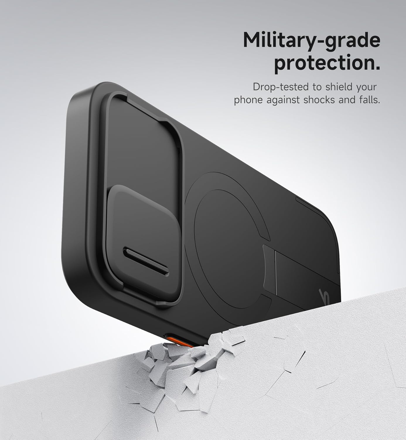 • Мощно магнитно закрепване: Този тънък калъф е с изключително силно магнитно закрепване (до 13,28 N), за да гарантира, че телефонът ви е здраво свързан с всички магнитни аксесоари, включително безжични зарядни устройства, държачи за превозни средства, захранване и др.