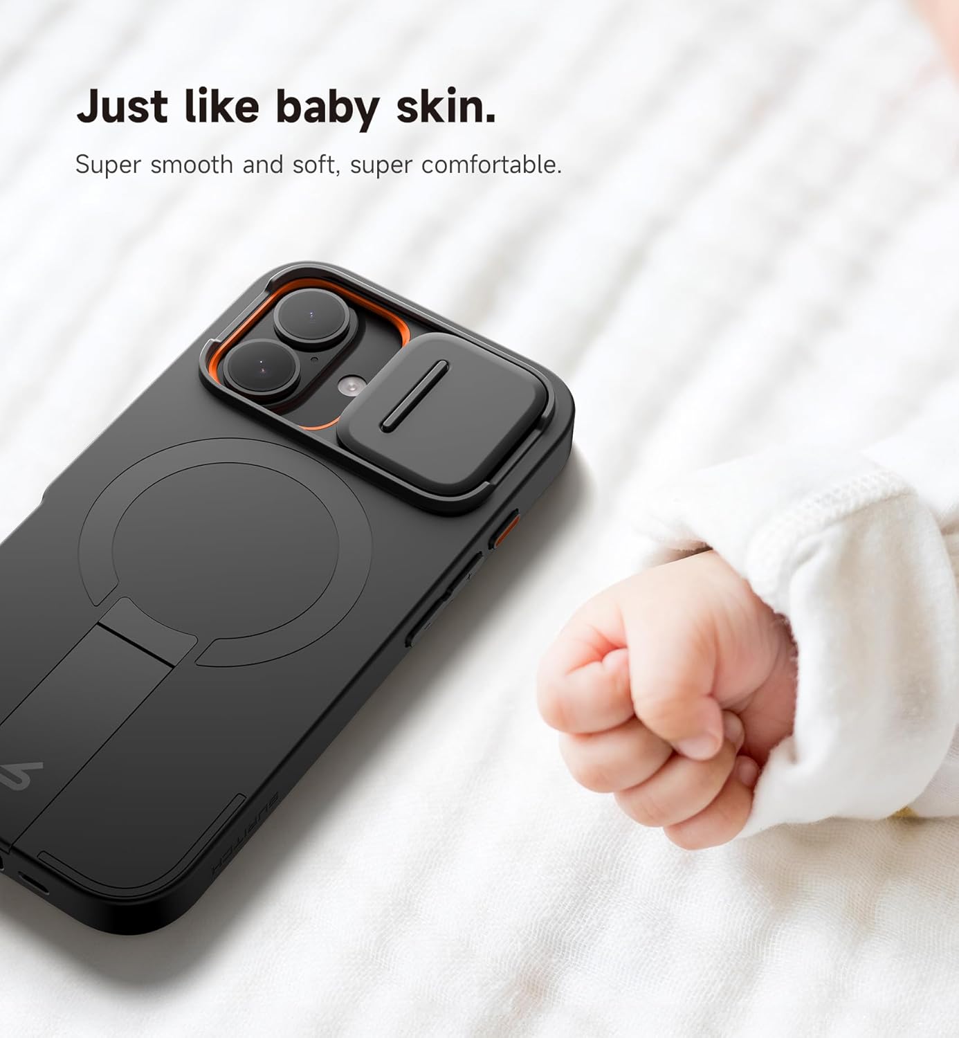 SURITCH Магнитен калъф, съвместим с iPhone 16, Удароустойчив калъф за мобилен телефон, Защитен калъф, устойчив на надраскване, с плъзгащ се капак за камерата и регулируема стойка (черен)