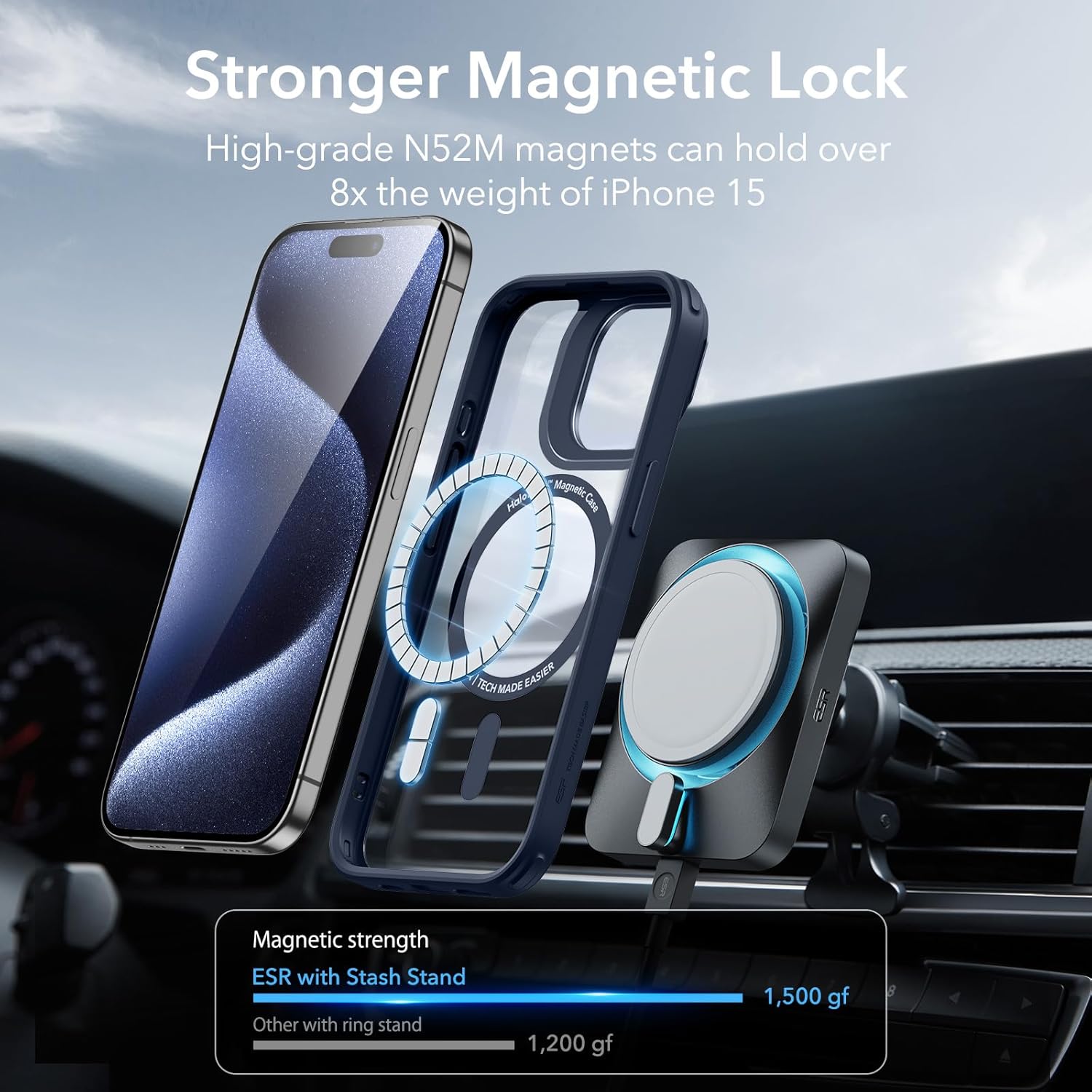 • [По-здраво магнитно затваряне] Силните вградени магнити със сила на задържане от 1500 g позволяват по-бързо и лесно безжично зареждане на място, както и носене със себе си и сигурно затваряне на всеки MagSafe аксесоар. Идеален за вашия iPhone 17 Pro Max калъф MagSafe.