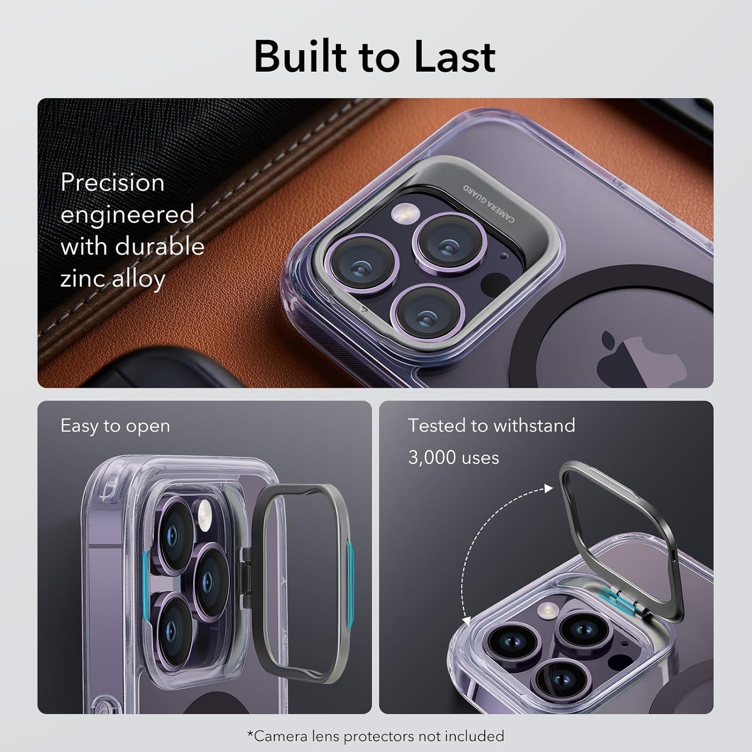 Съвместим с ESR MagSafe калъф за мобилен телефон със стойка за iPhone 14 Pro, класическа стойка с HaloLock, военна стандартна защита, вграден пръстен за камера, устойчив на надраскване гръб, прозрачен