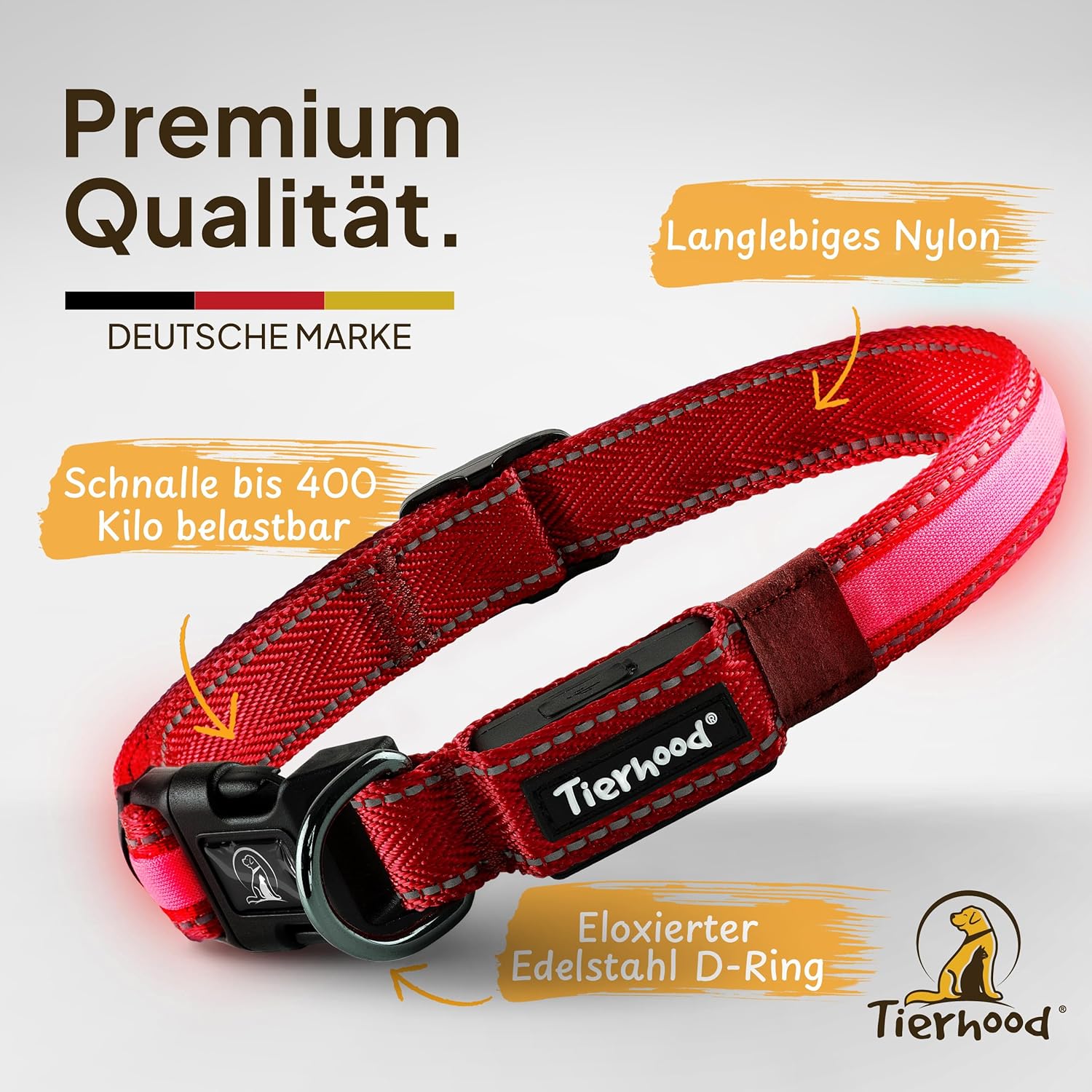 Светещ нашийник за кучета - Светещ нашийник за малки и големи кучета - LED нашийник за кучета с презареждаем дисплей - Издръжлив, устойчив на атмосферни влияния и удобен - Идеален за нощни разходки - Червен, Размер M