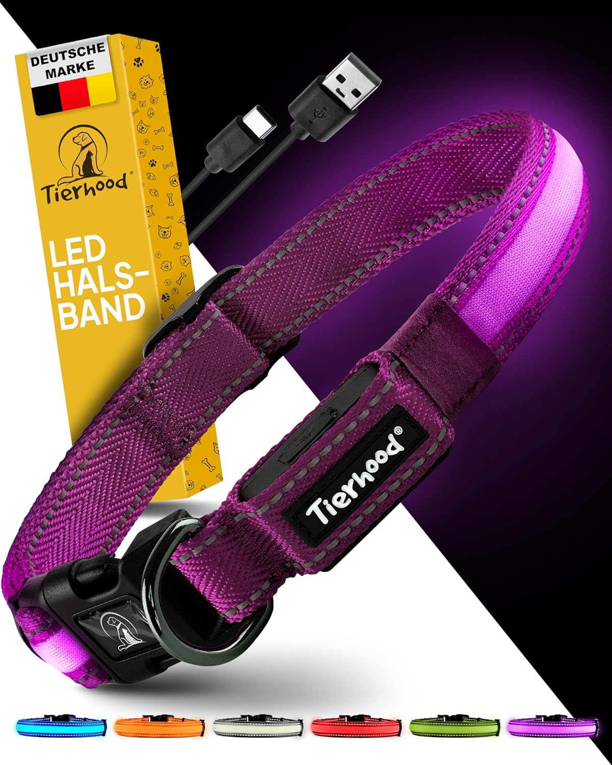 Светещ нашийник за кучета - Светещ нашийник за малки и големи кучета - LED нашийник за кучета с презареждаем дисплей - Издръжлив, устойчив на атмосферни влияния и удобен - Идеален за нощни разходки - Лилав, Размер M