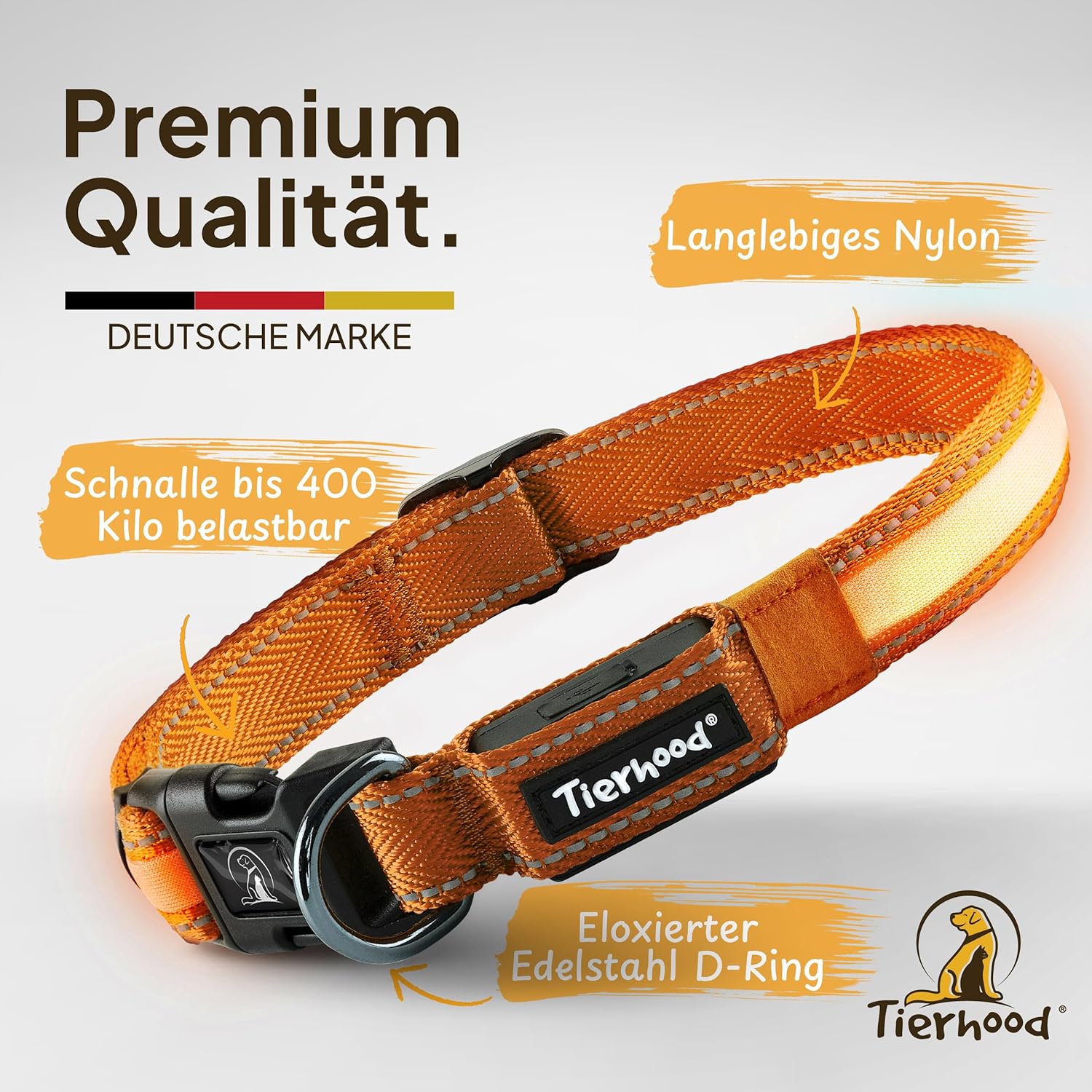 Светещ нашийник за кучета - Светещ нашийник за малки и големи кучета - LED нашийник за кучета с презареждаем дисплей - Издръжлив, устойчив на атмосферни влияния и удобен - Идеален за нощни разходки - Оранжев, Размер L