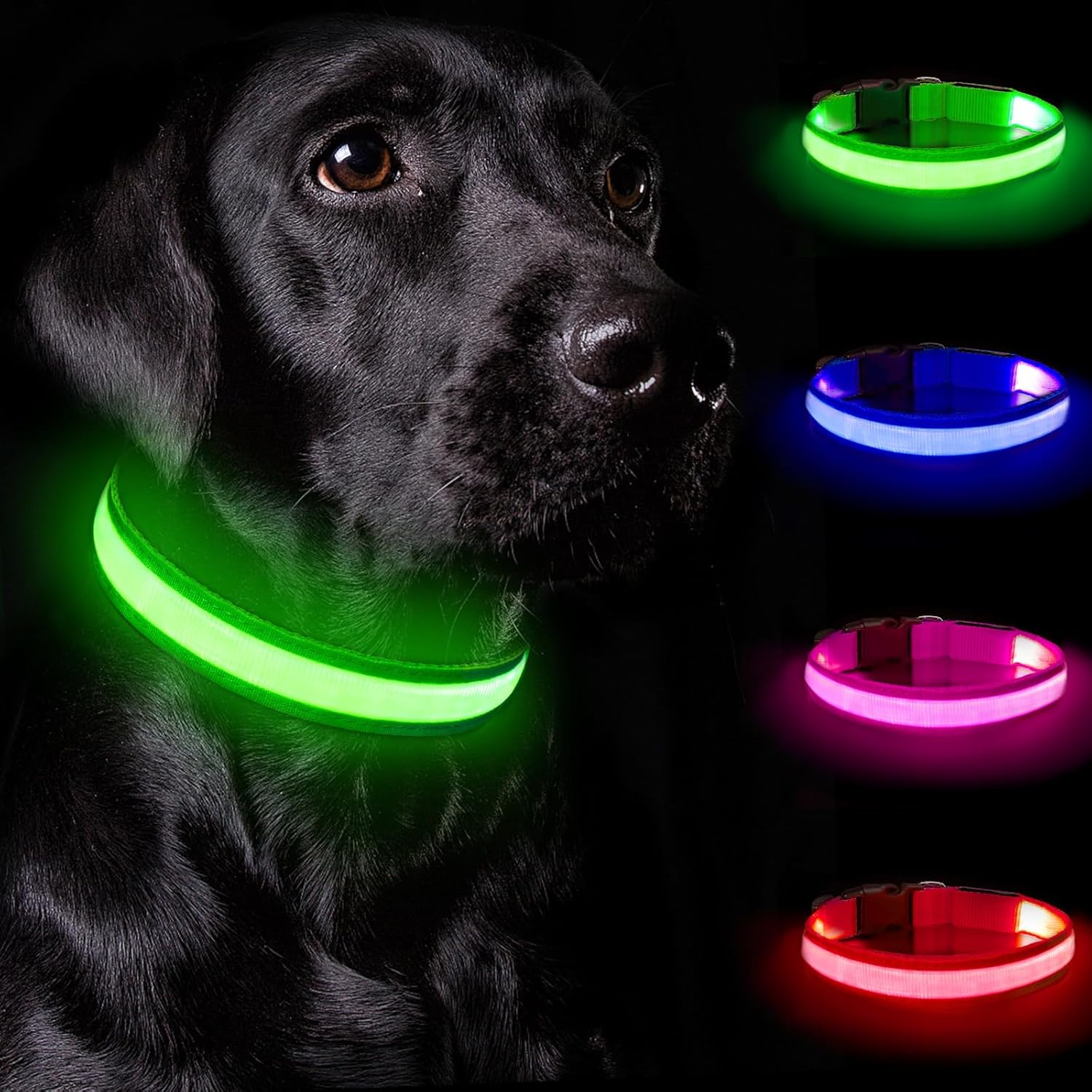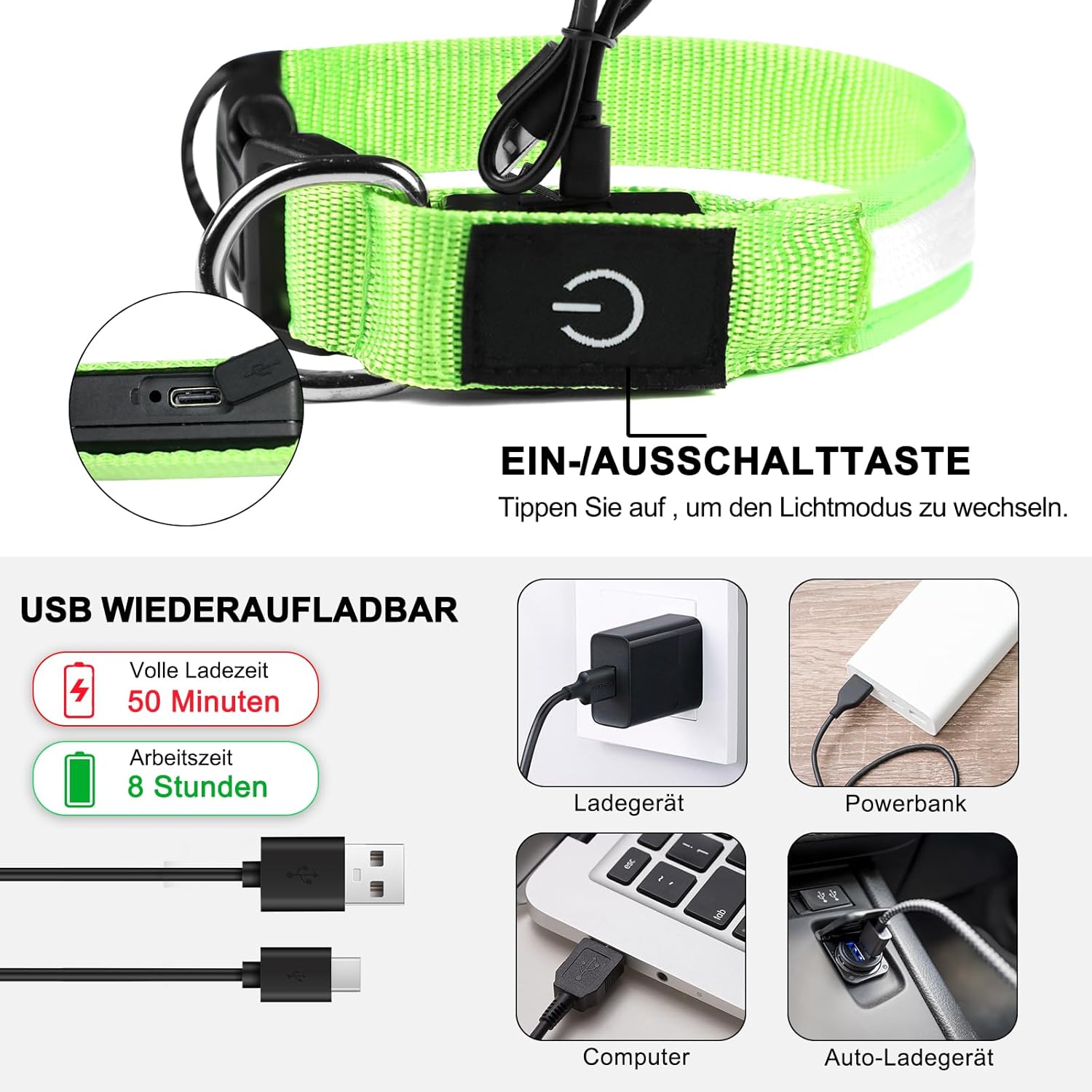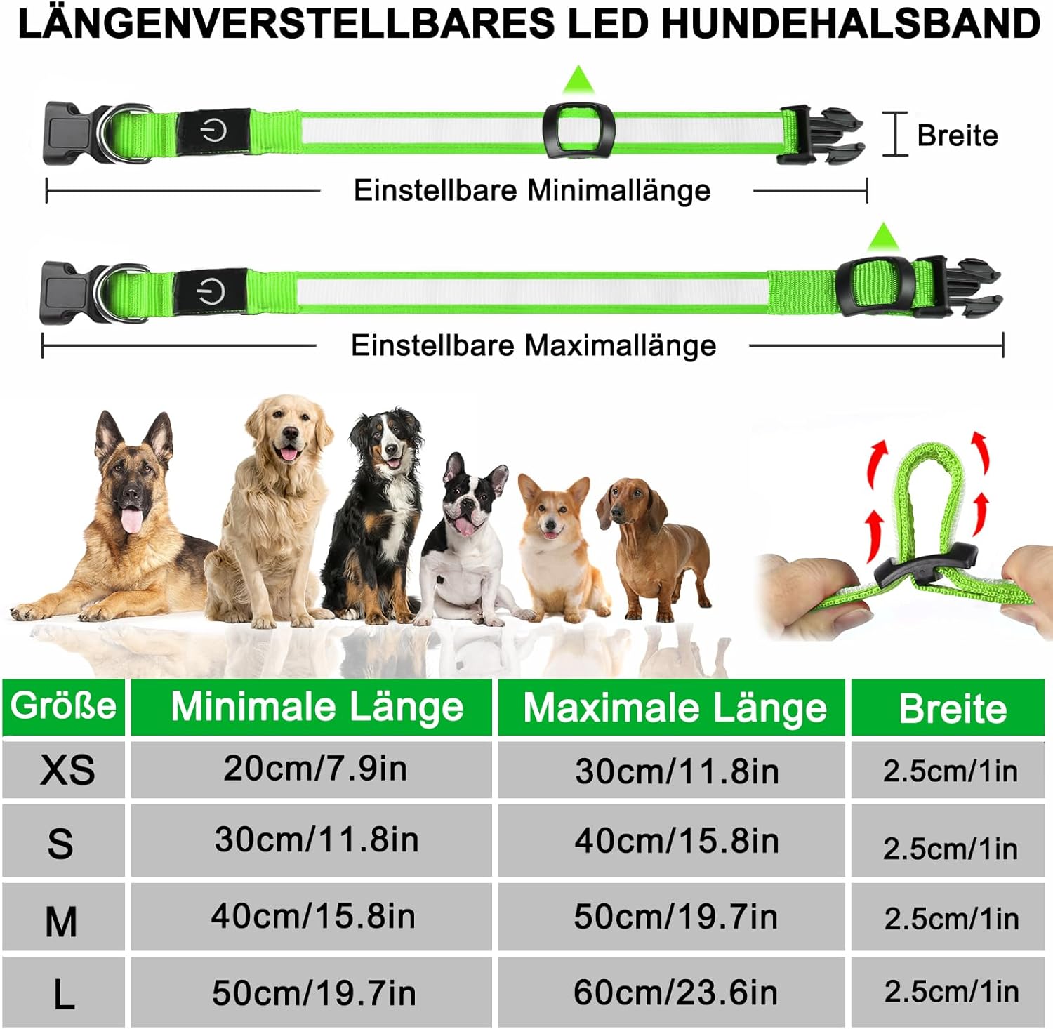 Светещ нашийник за кучета Nepfaivy с USB презареждаем - Светещ нашийник за кучета с регулируема дължина за средни до големи кучета, LED нашийник за кучета с 3 режима на осветление за нощна безопасност (зелен-XS)