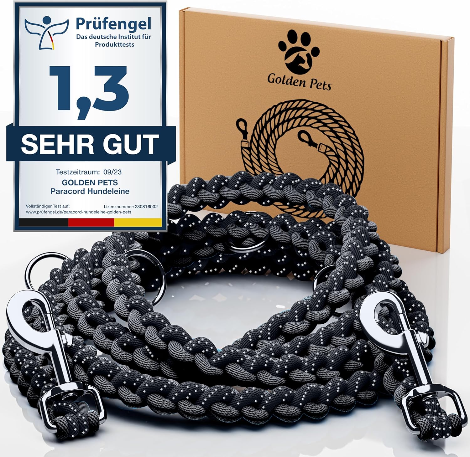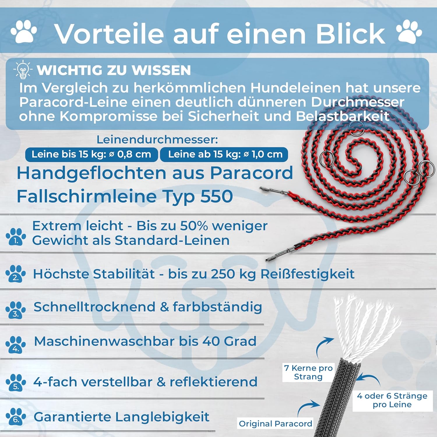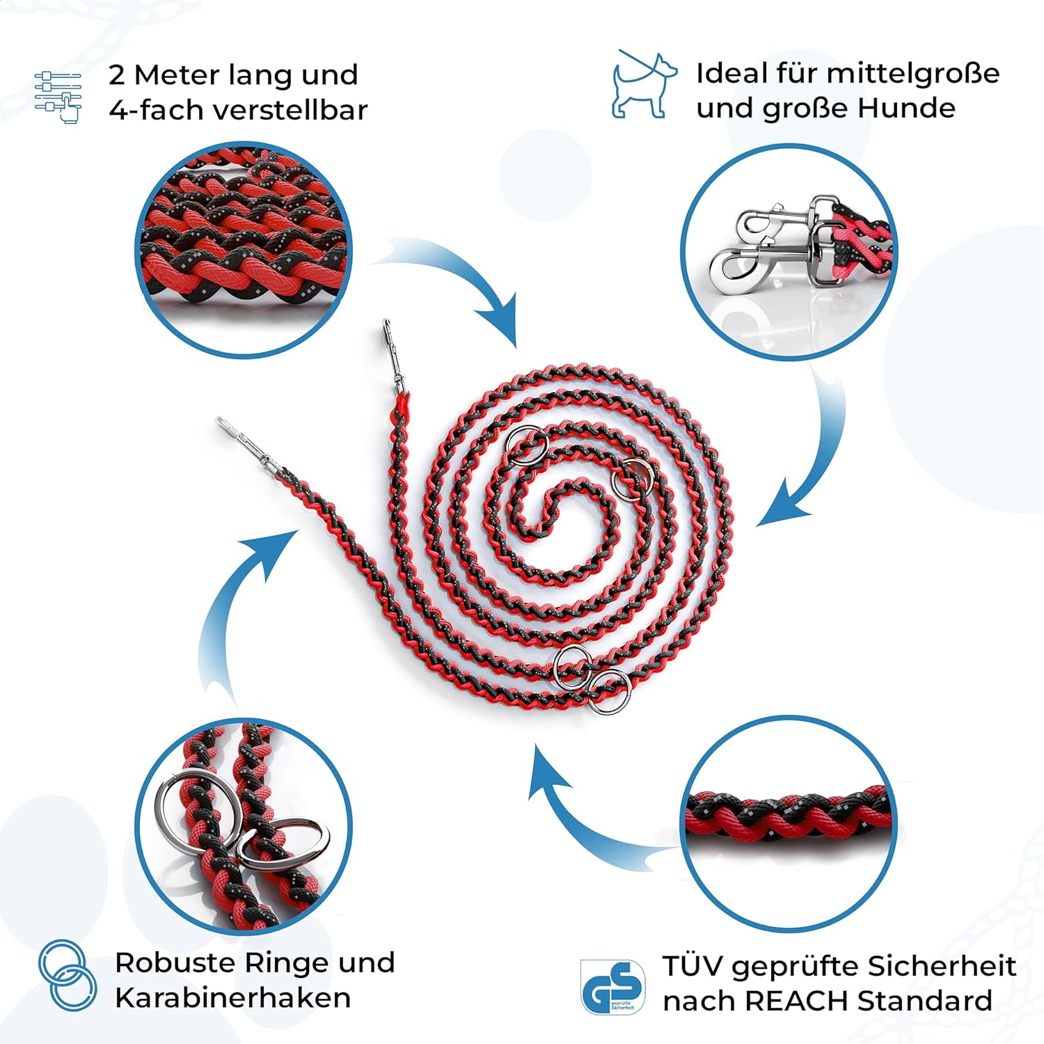 Светлоотразителна каишка за куче, 2 м, регулируема, устойчива на атмосферни влияния и разкъсване до 250 кг, паракордова каишка, каишка за през рамо, за малки и големи кучета. Резултат от теста: Много добър
