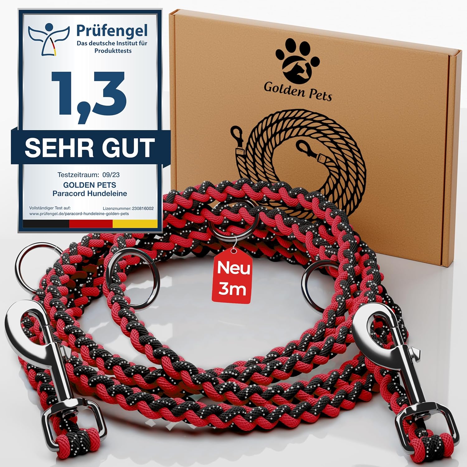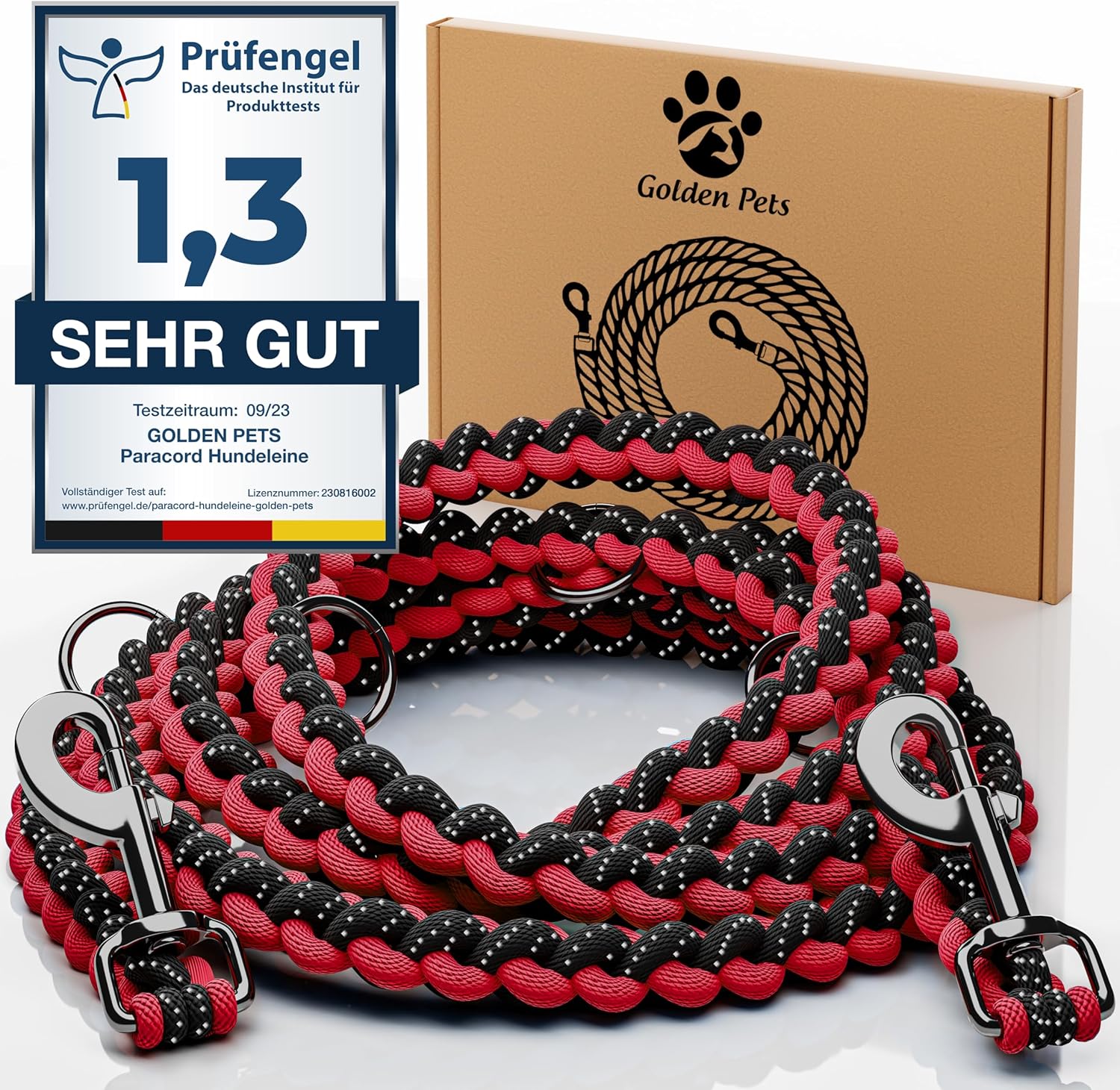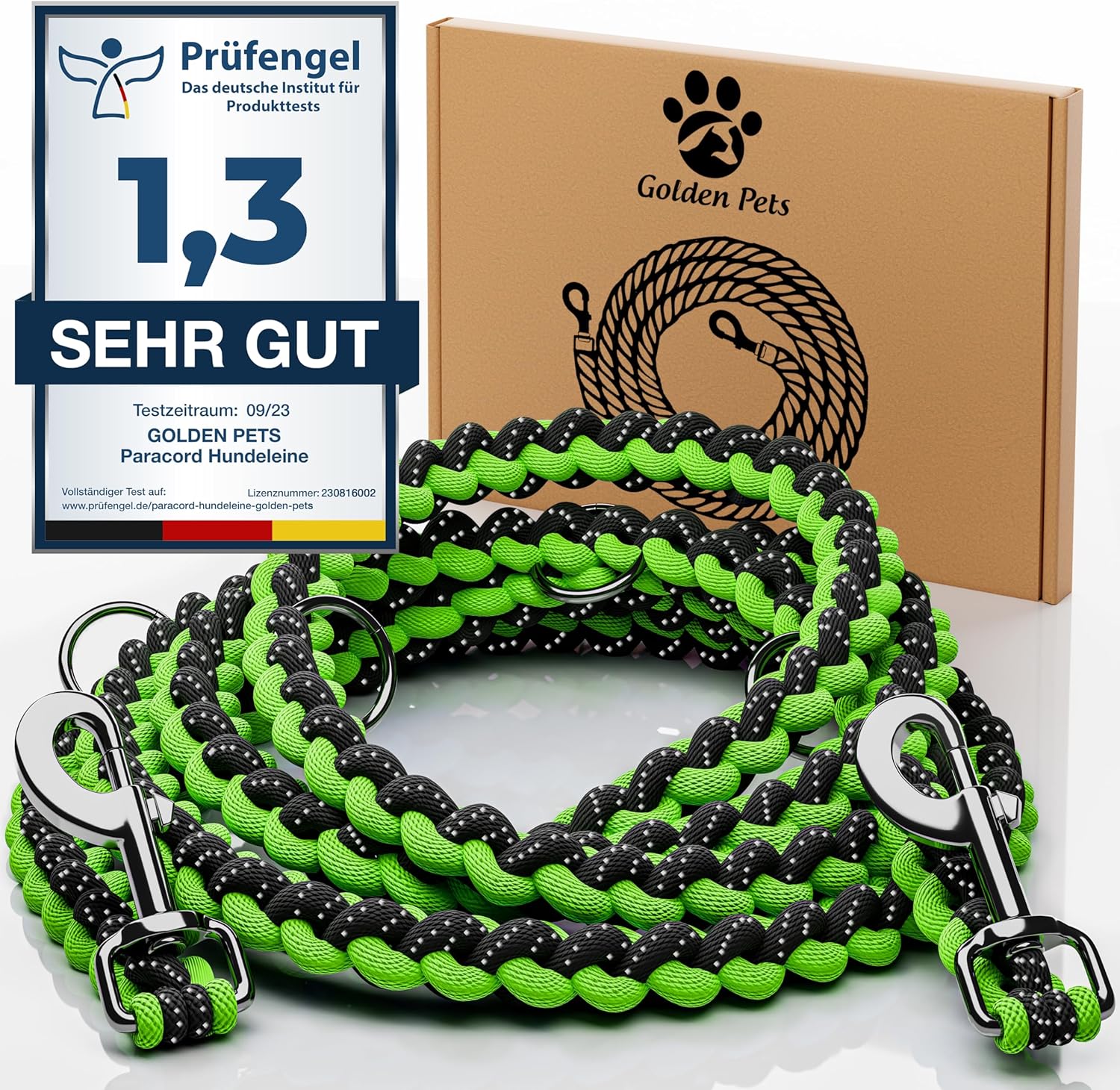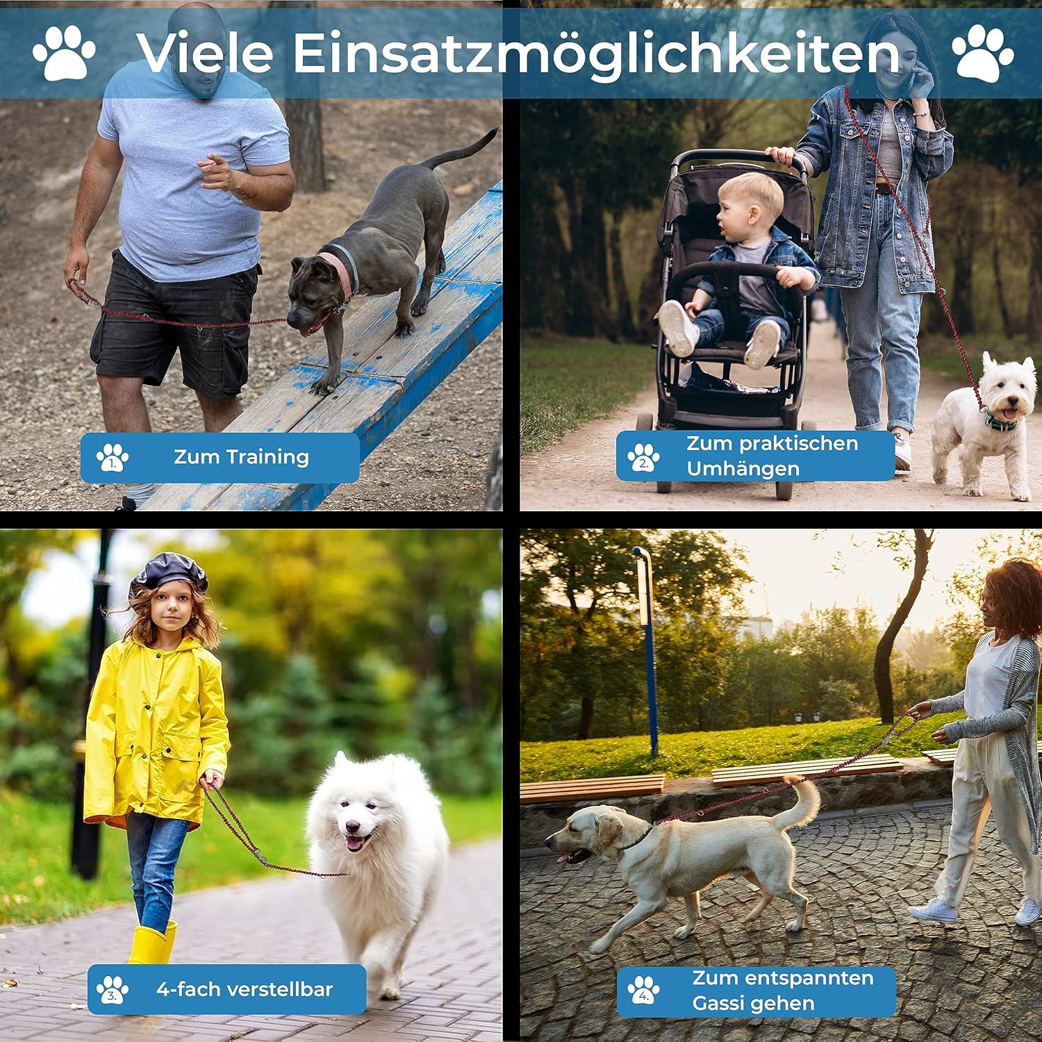 Светлоотразителна каишка за куче, 2 м, регулируема, устойчива на атмосферни влияния и разкъсване до 250 кг, паракордова каишка, каишка за през рамо, за малки и големи кучета. Резултат от теста: Много добър
