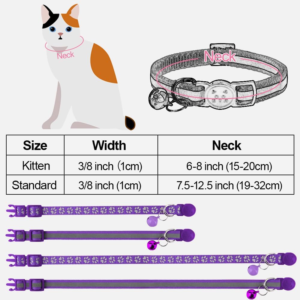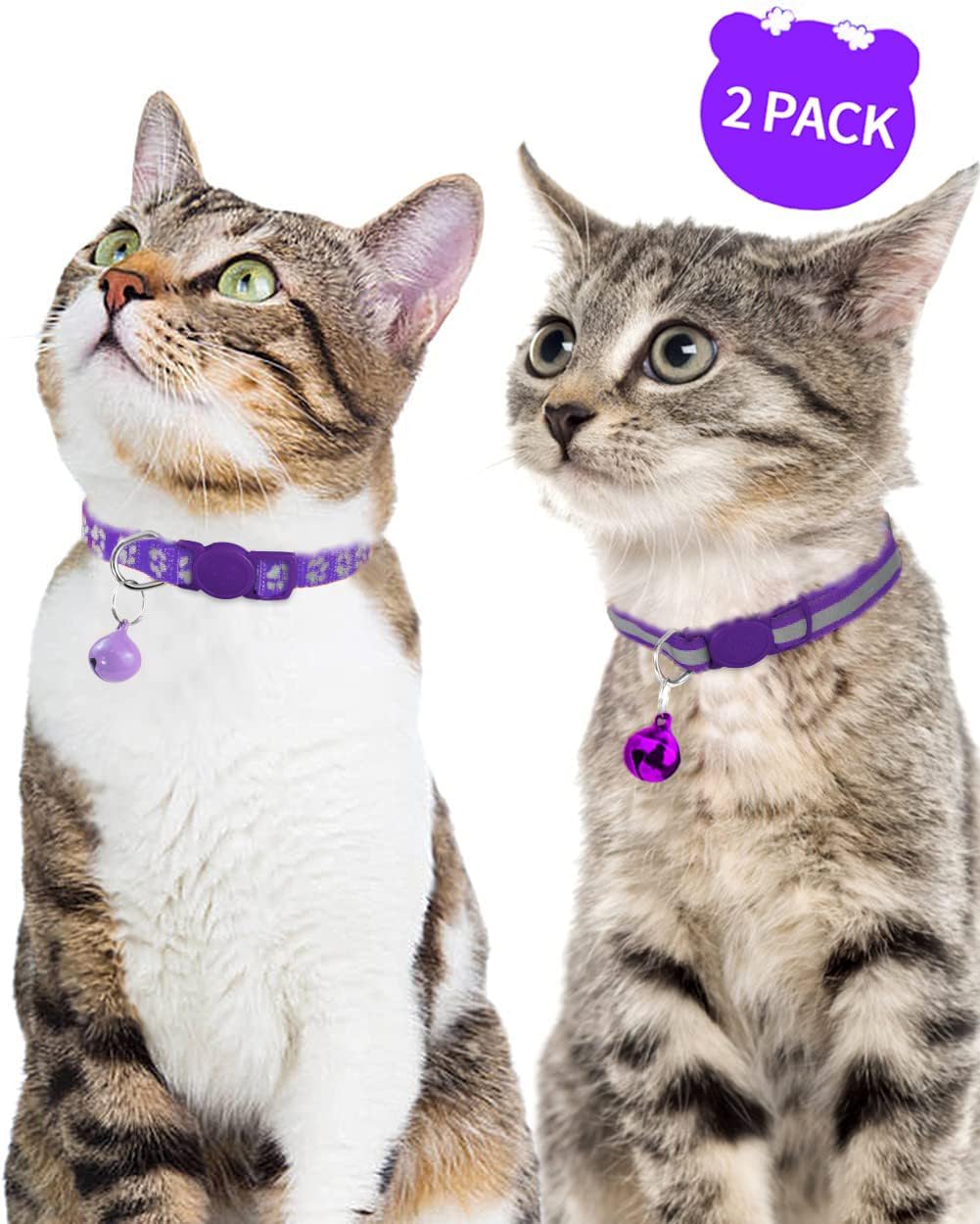 Светлоотразителни нашийници Taglory за котки с предпазна ключалка и звънец, пакет от 2 – Регулируеми нашийници за котки и котенца