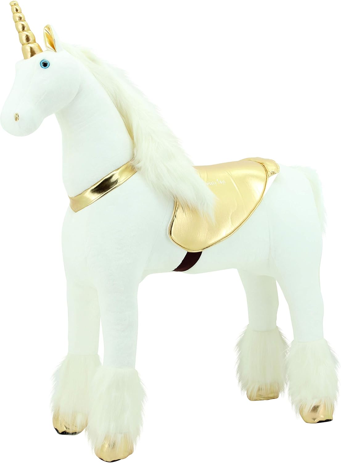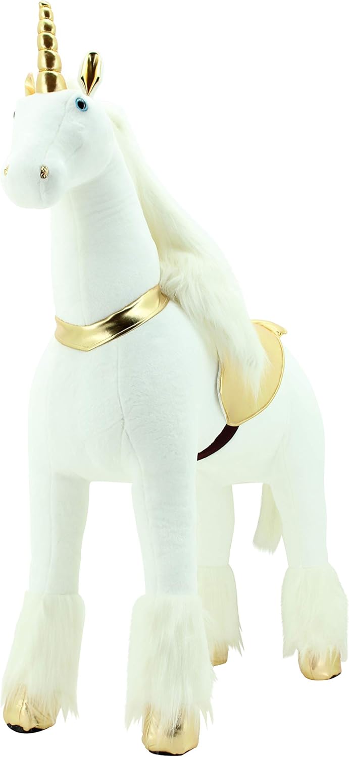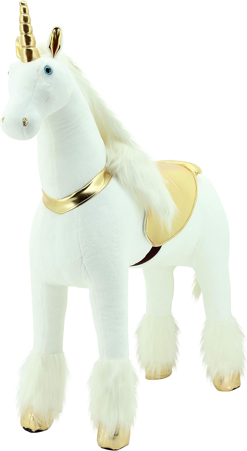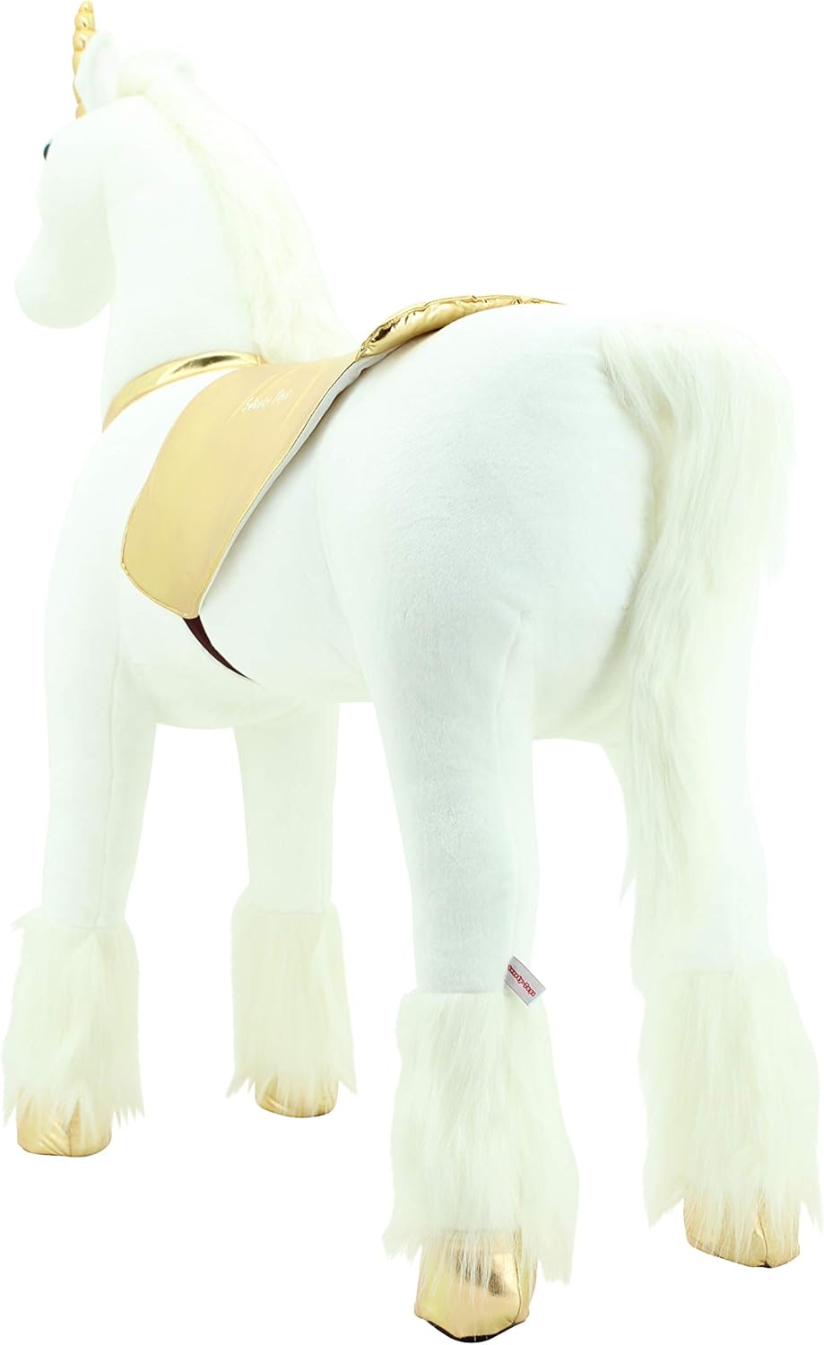 Новият и подобрен люлеещ се кон от Sweety Toys е със здрава основа. Полистиролът е подсилен със стоманена рамка, което го прави по-здрав и стабилен. Няма повече напукване или вдлъбване на полистирола. Това значително подобрява живота на люлеещия се кон и цялостното му качество. Стоманена рамка, НЕ полистиролова форма. Това е красив люлеещ се кон, щателно изработен. Много високо качество, много здрав и много елегантен бял цвят със светла грива и опашка. Гарантирана е постоянна усмивка на лицето на детето. Gigant е наистина мечта и ще бъде дълготраен спътник за всяко дете. Съотношението цена-качество ще зарадва всички родители и дори баби и дядовци, които сами са си пожелали такъв кон. - Кафяв люлеещ се кон с козина - Конят е меко пълнен и много добре направен - Със седло - Висококачествена юзда - Еднорогът се предлага частично сглобен. Размери: Височина приблизително 125 см, Ширина приблизително 30 см, Височина на седлото приблизително 85 см. Идеален за деца над 5 години. Товароносимост приблизително 100 кг - Хипоалергенен - Огнеупорен. Оригиналният люлеещ се кон. Този нов другар за игра се предлага напълно сглобен; само главата трябва да се закрепи с цип. Премиум продукт от Sweety-Toys. Световна премиера!