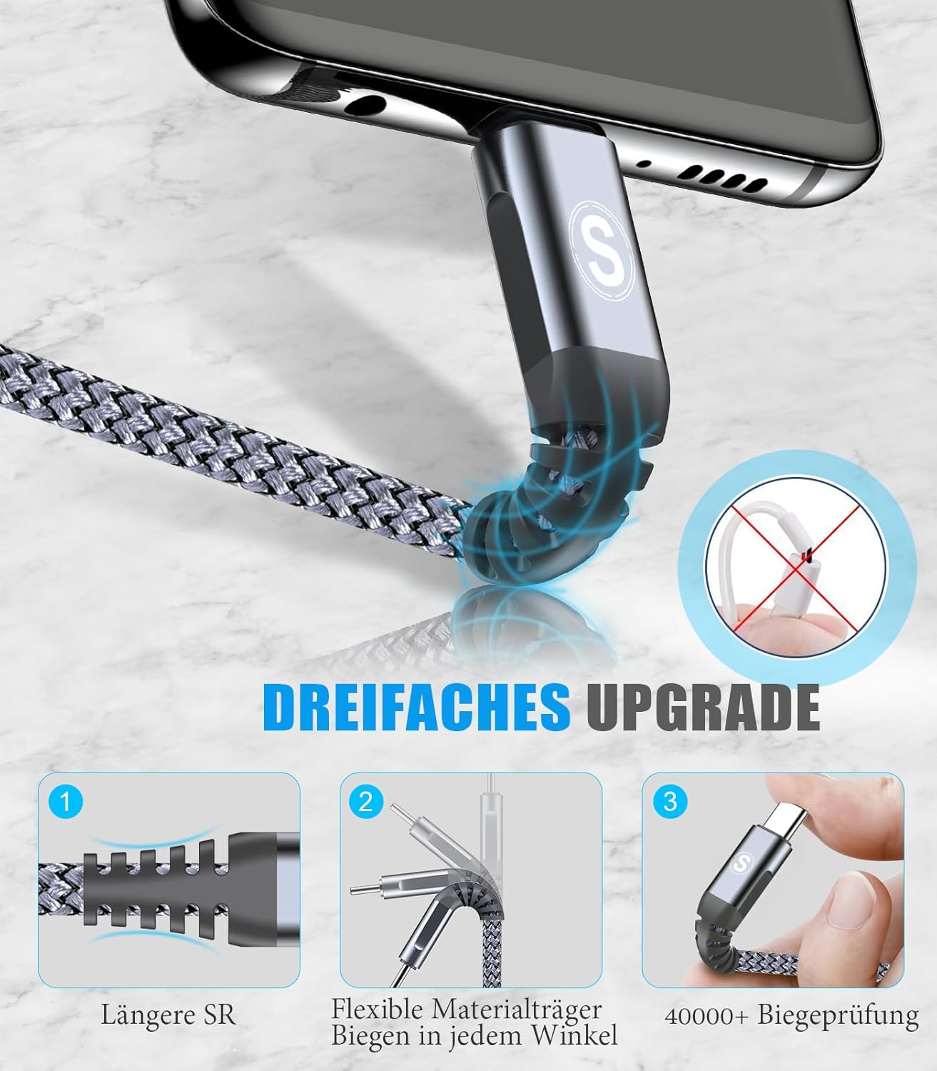• Тестван и висококачествен найлон: с тестван живот от 5000+ огъвания, този USB кабел за зареждане е много по-надежден. Висококачественият найлонов оплетен кабел Type C е с допълнителна издръжливост и не се заплита.