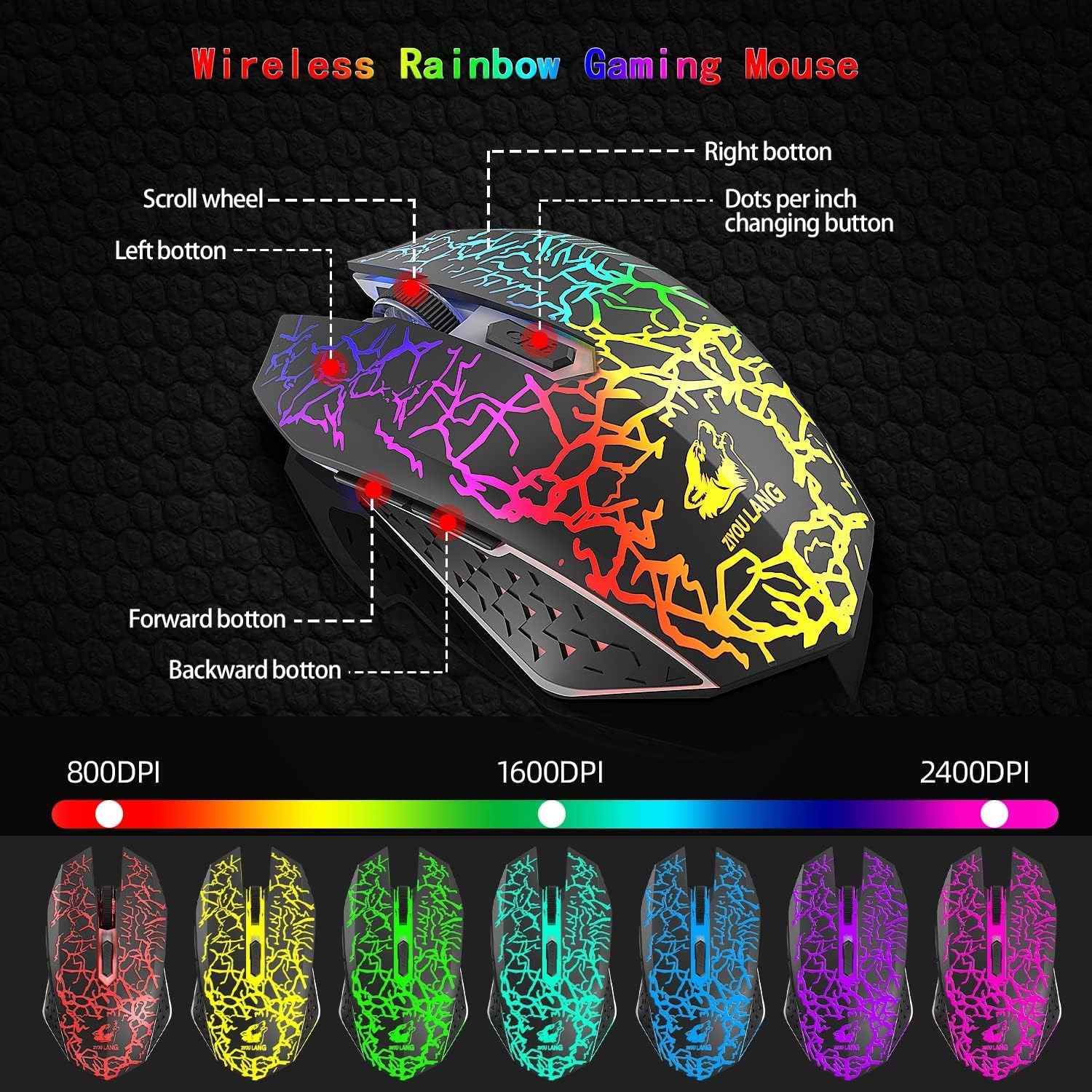 • Готина геймърска мишка: 3-степенна DPI резолюция, 800-1600-2400, лесна за управление в различни игрови сцени. Мишката използва технология за релефни кухини, която разкрива блясъка. Прецизен енджин за електронни спортове, професионален чип за електронни спортове, стабилно предаване, точен анализ, правят ви по-добри в играта или на работа.
