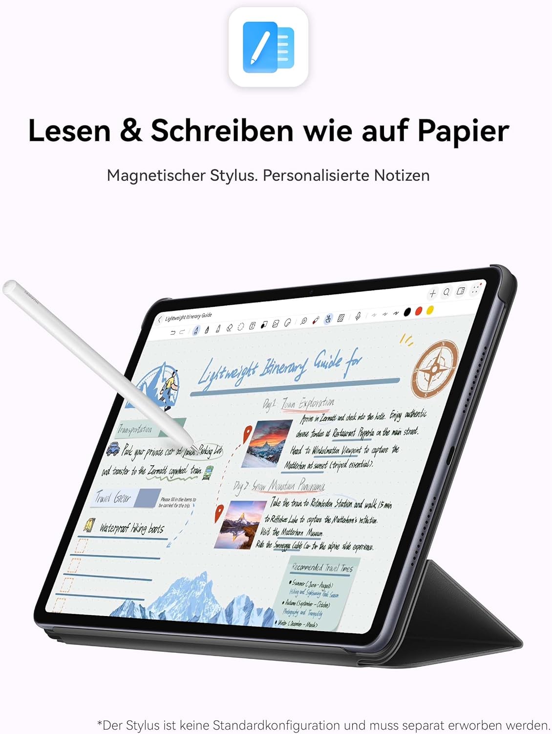 • 11,5-инчов HUAWEI FullView дисплей: Поглезете очите си с 11,5-инчовия HUAWEI FullView дисплей, който се отличава с оптимизирано съотношение на страните 3:2 и предоставя впечатляващи детайли благодарение на резолюция 2.2K и честота на опресняване от 120 Hz.