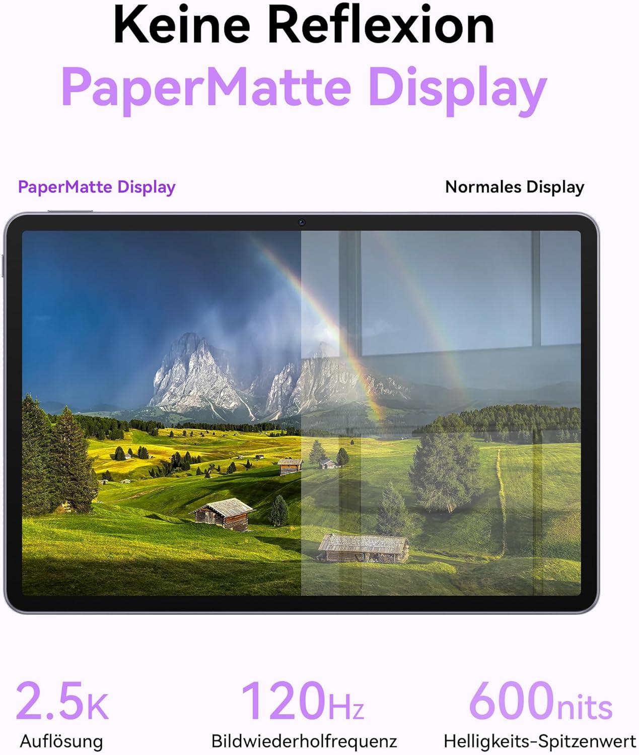 • Щадлив за очите дисплей PaperMatte: Технологията за нано-ниво антирефлексно ецване елиминира 97% от светлинните смущения, осигурявайки визуално изживяване, наподобяващо това на хартия. Намаленото отражение гарантира, че всичко е възможно най-ясно всеки път, когато погледнете. Така че можете да четете електронни книги или да следвате онлайн курсове без излишно напрежение в очите.