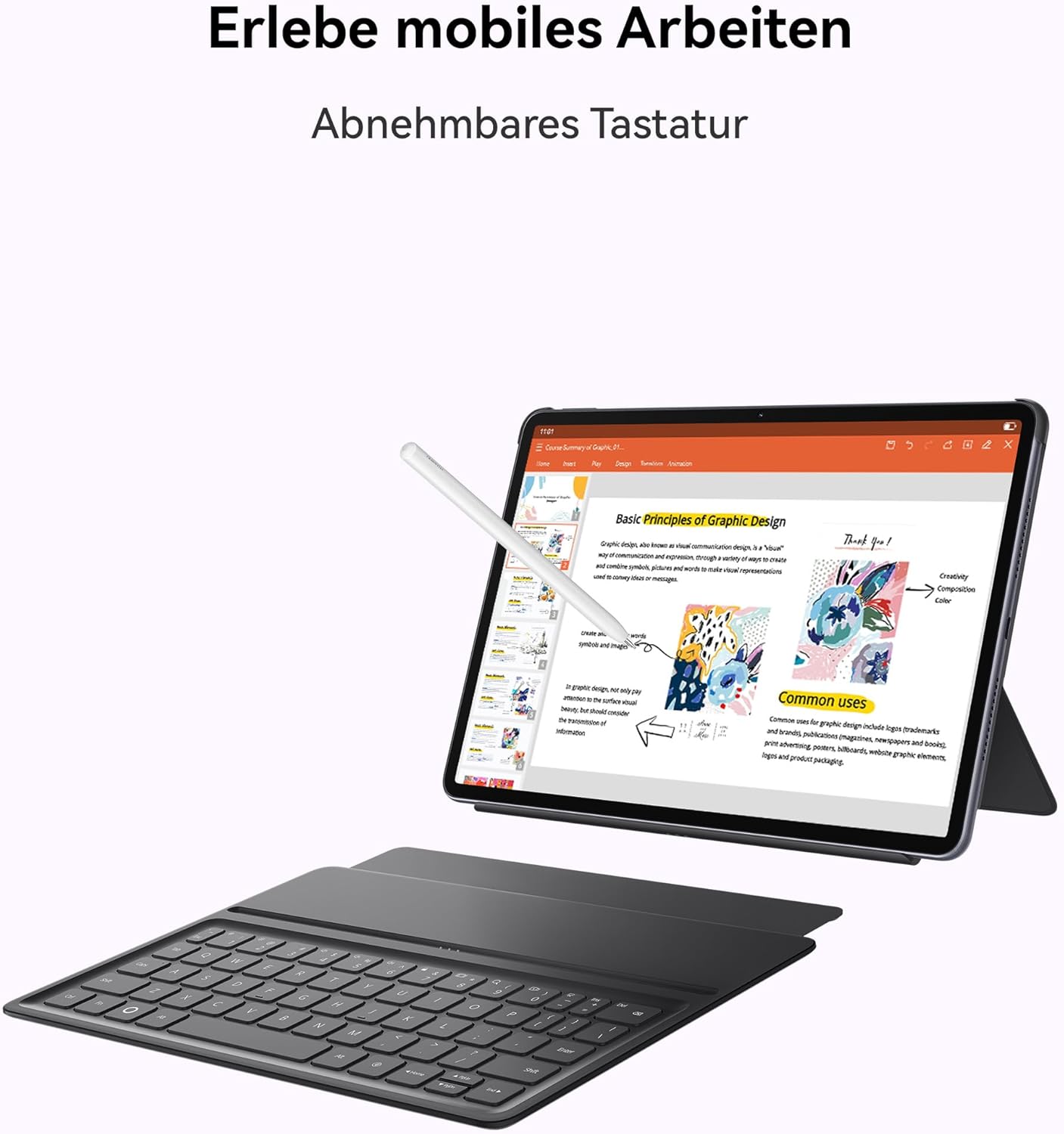 • 11,5-инчов HUAWEI FullView дисплей: Поглезете очите си с 11,5-инчовия HUAWEI FullView дисплей, който се отличава с оптимизирано съотношение на страните 3:2 и предоставя впечатляващи детайли благодарение на резолюция 2.2K и честота на опресняване от 120 Hz.