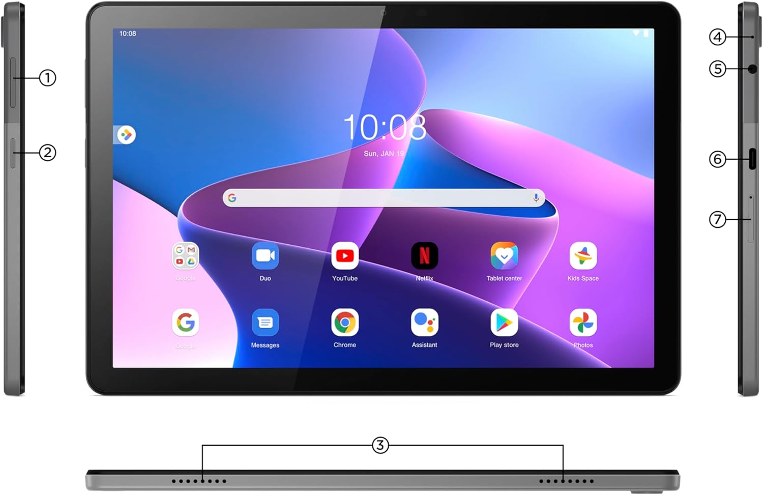 Таблет Lenovo Tab M10 (3-то поколение) | 10.1-инчов WUXGA сензорен дисплей | Unisoc T610 | 4GB RAM | 64GB памет | Wi-Fi | Android 12 | Сив