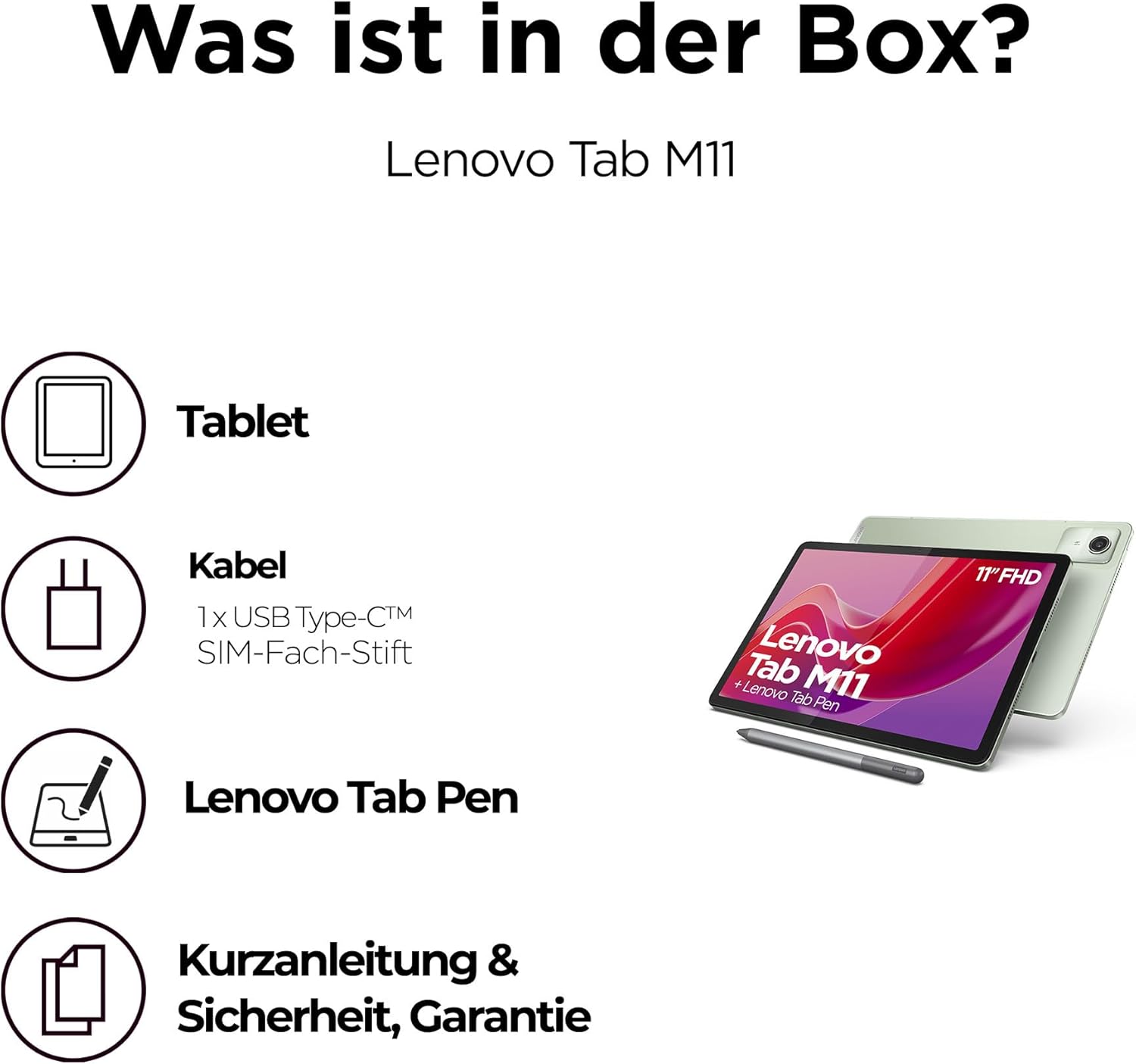 Таблет Lenovo Tab M11 | 11-инчов WUXGA сензорен дисплей | MediaTek Helio G88 | 8GB RAM | 128GB памет | Wi-Fi | Android 14 | Зелен | Включва писалка за таблет