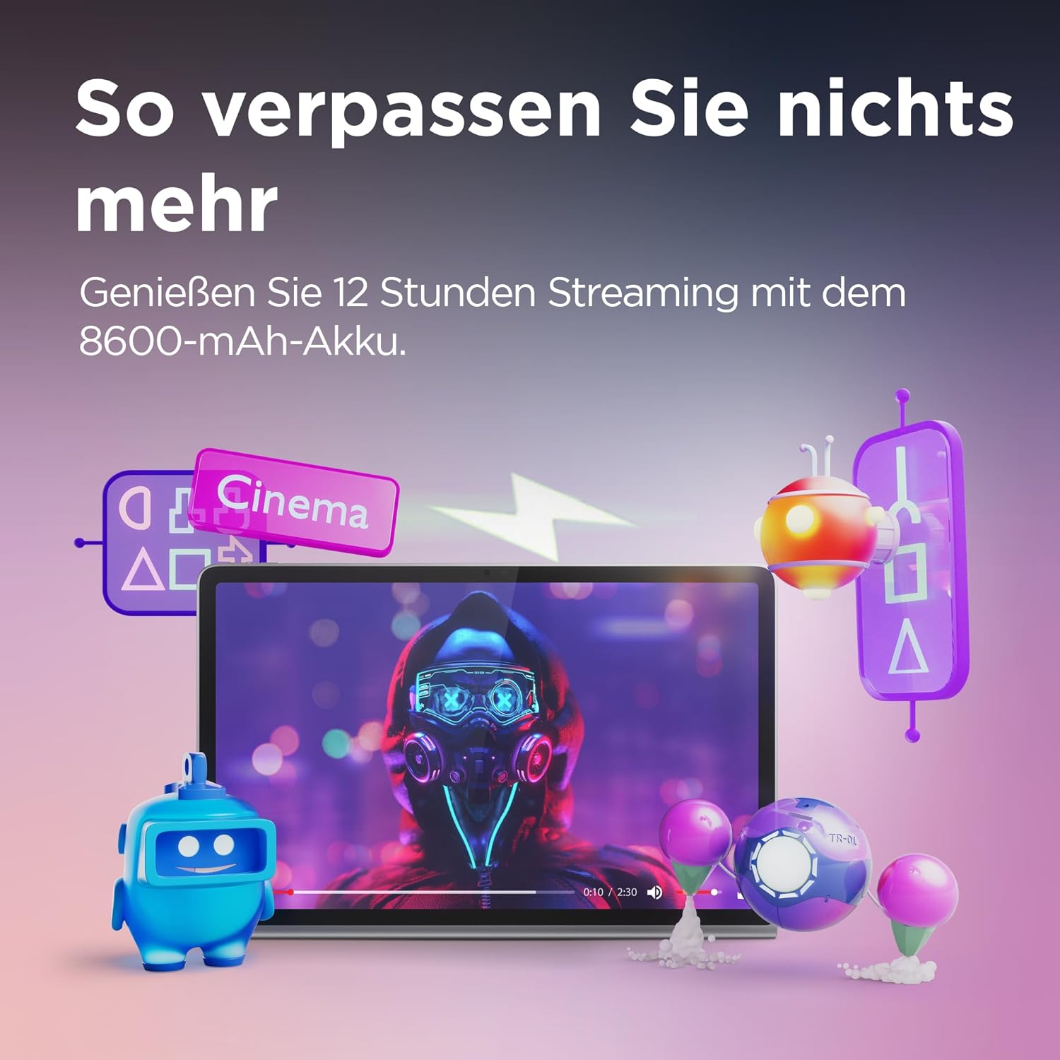 • Дълъг живот на батерията: Впечатляващ живот на батерията с капацитет 8600 mAh ви позволява да използвате таблета през целия ден, без постоянно да се налага да разчитате на източник на захранване.