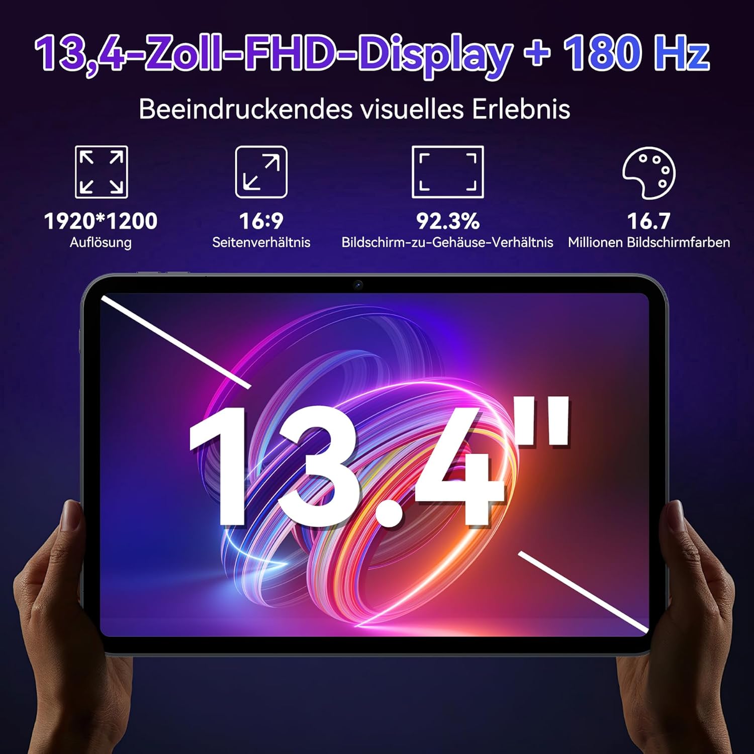 • Зашеметяващ 13,4-инчов таблет със 120Hz дисплей - Насладете се на кристално чиста и плавна картина на 13,4-инчовия FHD (1920x1200) екран с 92,3% резолюция и 16,7 милиона цвята за наистина завладяващо зрително изживяване. Високата честота на опресняване от 120Hz осигурява плавно превъртане, отчетливи изображения и зашеметяващо мултимедийно изживяване - идеално за работа, забавление и творчески проекти.