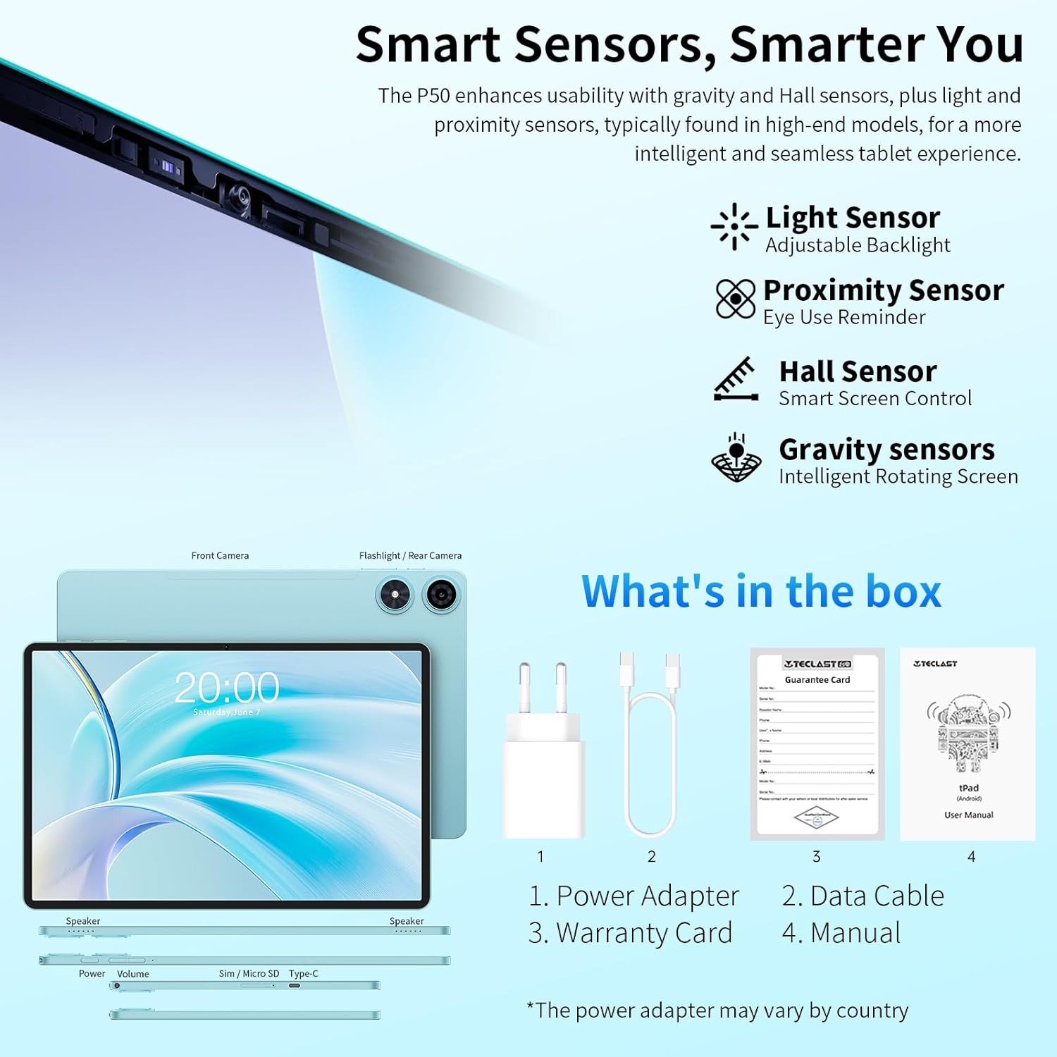• ????【20GB RAM + 128GB ROM + 5TB разширение】Teclast P50 се предлага с 20GB RAM (8GB LPDDR4 + 12GB разширяема памет) и 128GB ROM. Micro SD картата позволява разширяване на паметта до 5TB за изключително многозадачностно изживяване. 128GB високоскоростна ROM памет е идеална за съхранение на големи игри и аудиовизуално съдържание. Слушането на музика и гледането на видеоклипове предлагат по-завладяващо изживяване, отколкото просто да сте там. Можете да се наслаждавате на стабилни услуги и любимите си приложения.