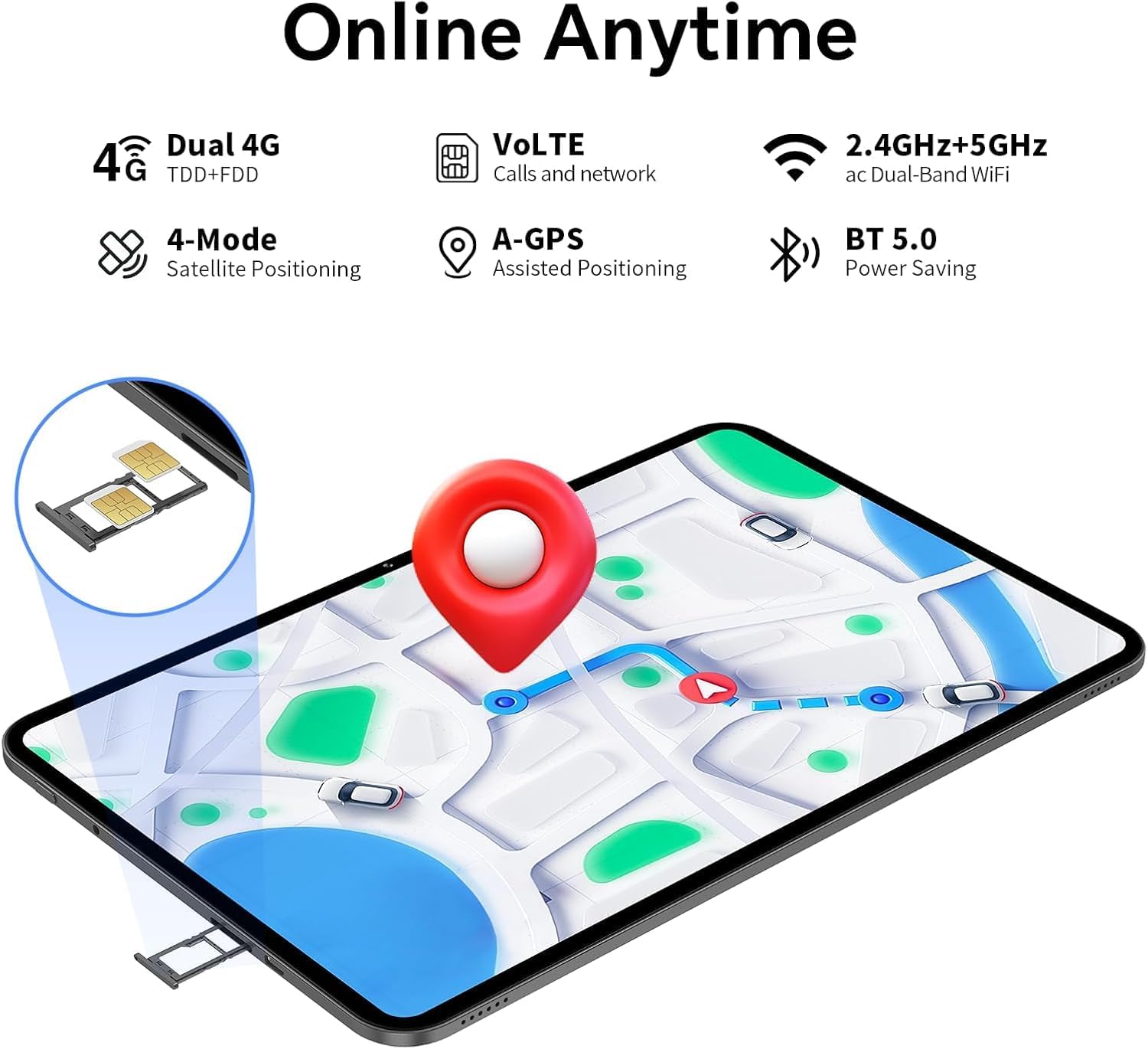 • ???? 4G LTE + OTG за пълна свързаност. Таблет със слот за SIM карта (LTE/4G) и двоен Wi-Fi. Таблет с LTE SIM карта за мобилна работа или стрийминг потребители. Батерия 8000 mAh за по-дълъг живот. Таблетът с размер 13+ инча разполага с два високоговорителя за по-добро потребителско изживяване. Той също така поддържа прецизно позициониране GPS/B1C/GLONASS/Galileo.