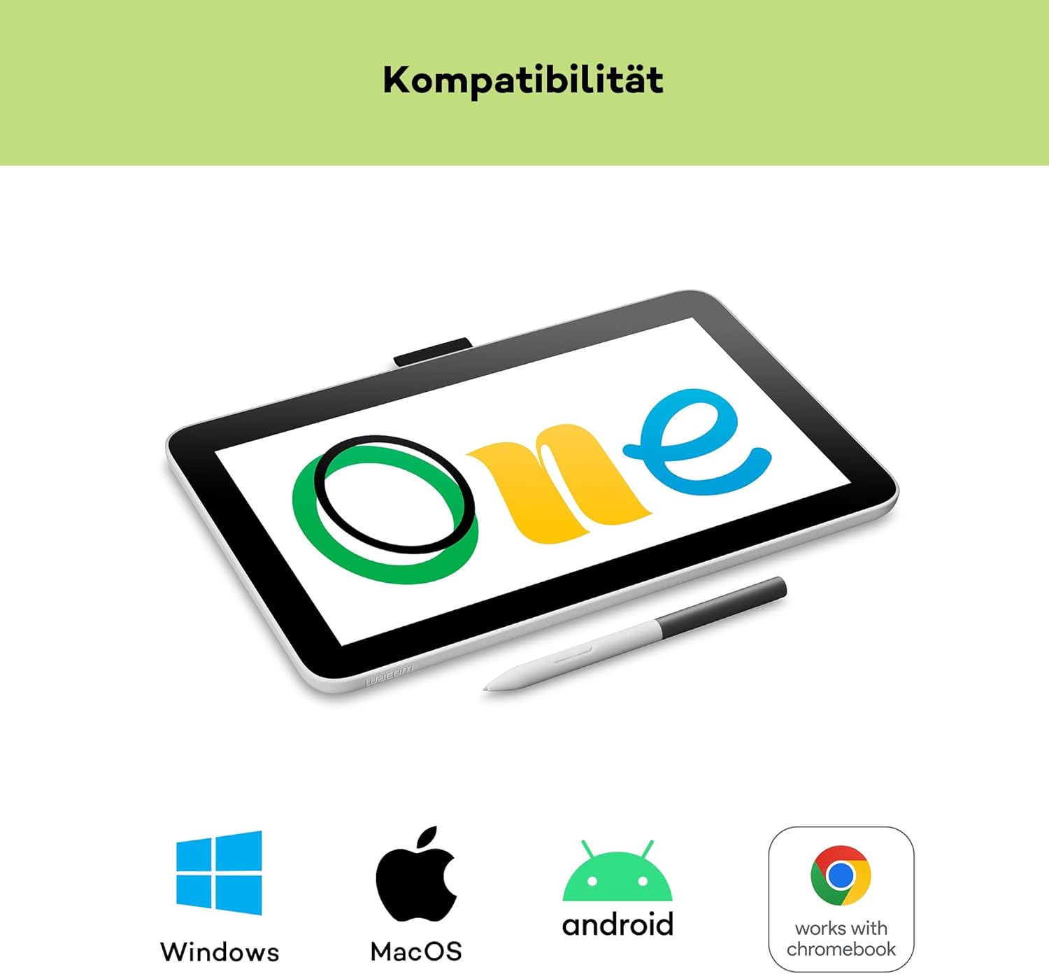 Таблет за рисуване Wacom One 12 11.6" Full HD 99% sRGB с EMR писалка без батерия за Windows, Mac, Chromebook и Android - идеален за начинаещи творци