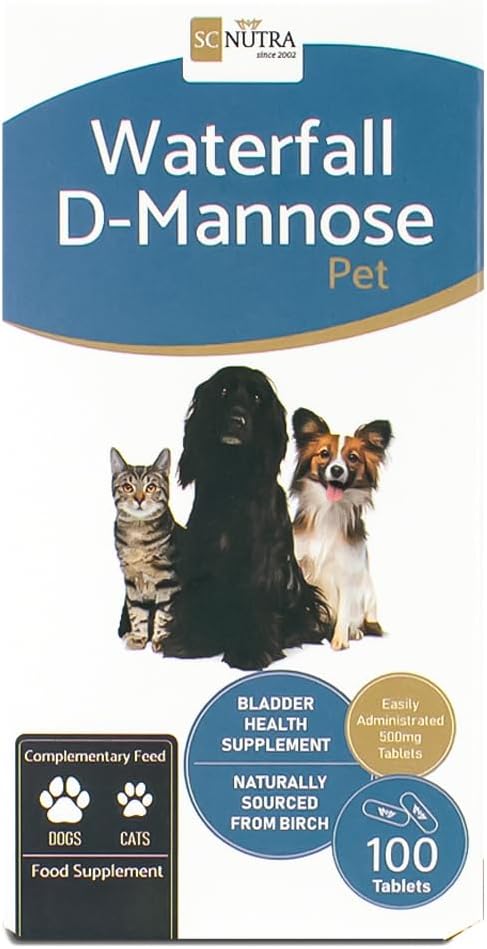 Waterfall D-Mannose Pet е естествено лечение за здравето на пикочния мехур при котки и кучета. Нашият нов таблетен формат предлага на собствениците на домашни любимци алтернативен начин за прилагане на D-маноза на техните животни. Нашите тънки таблетки от 500 mg са подходящи за повечето кучета и по-големи котки.
