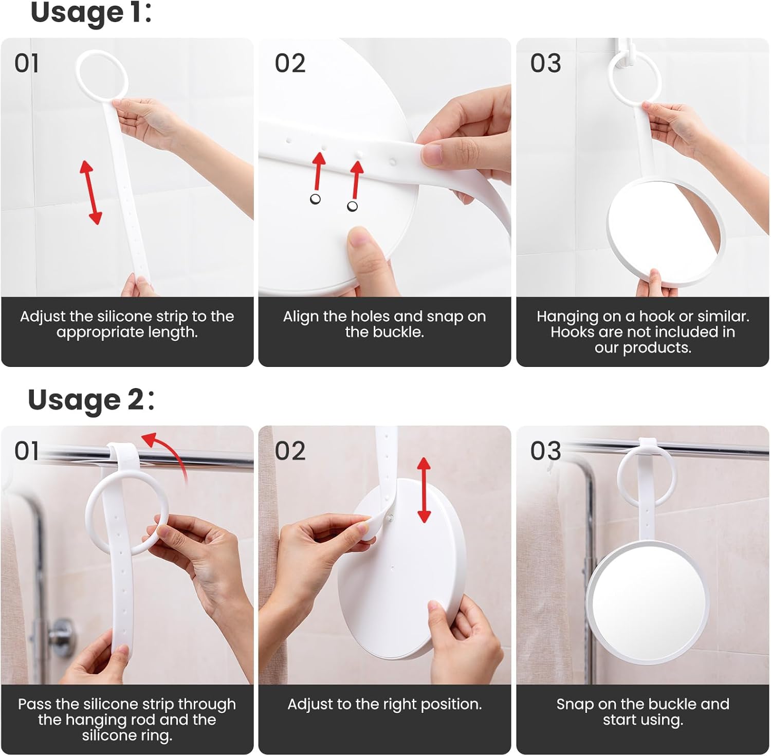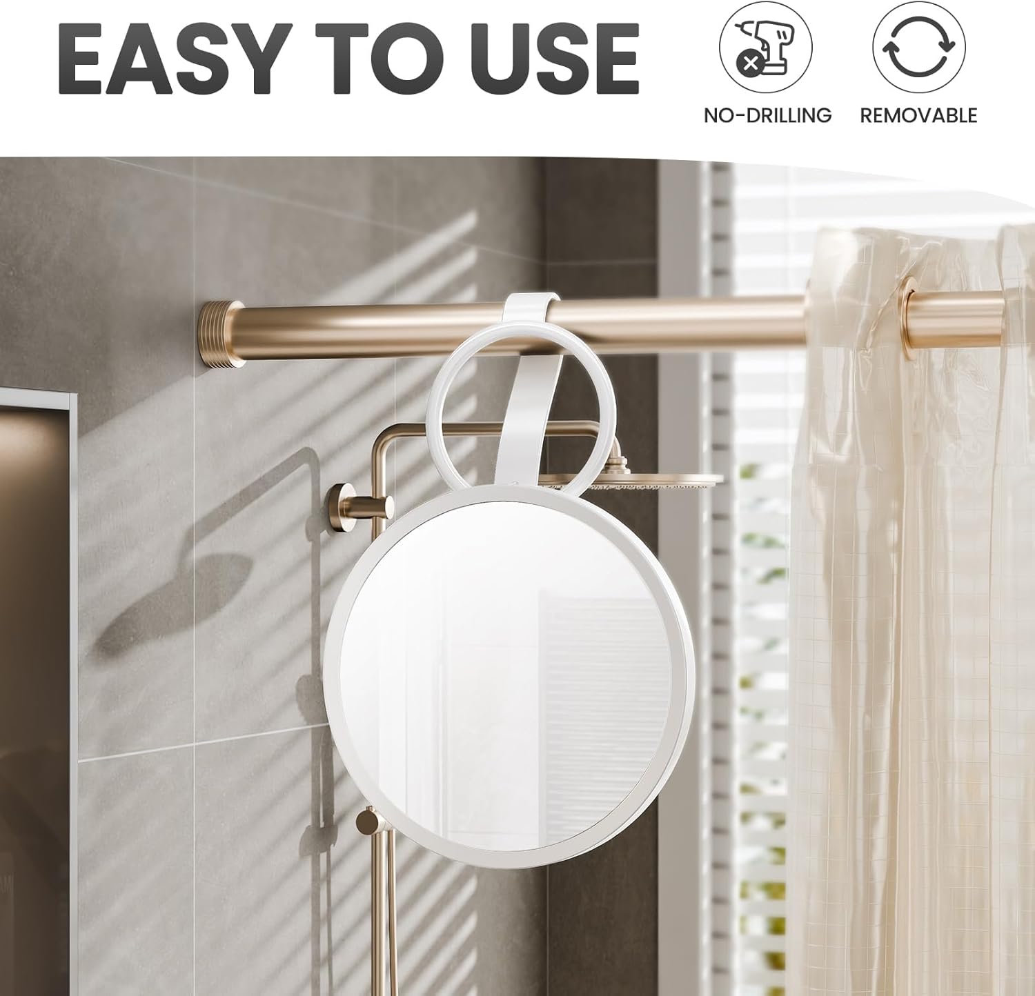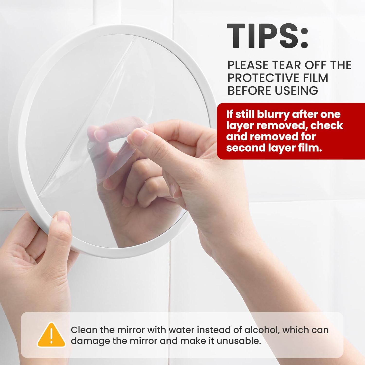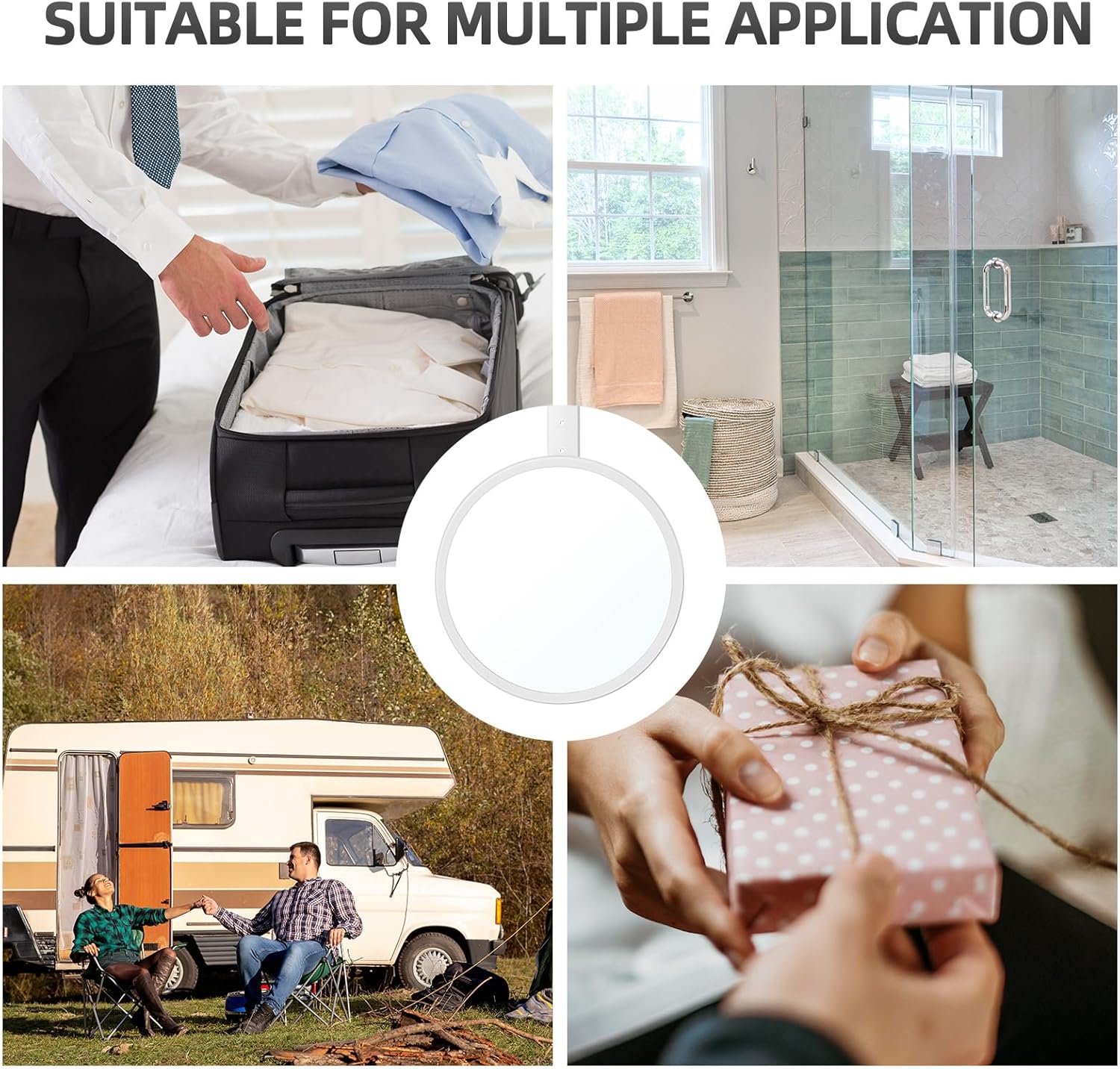 TAILI Огледало за душ против замъгляване за пътуване, огледало за бръснене за душ, подвижно и без пробиване, без замъгляване, огледало за душ за баня, нечупливо и водоустойчиво огледало за бръснене за душ, бяло и кръгло