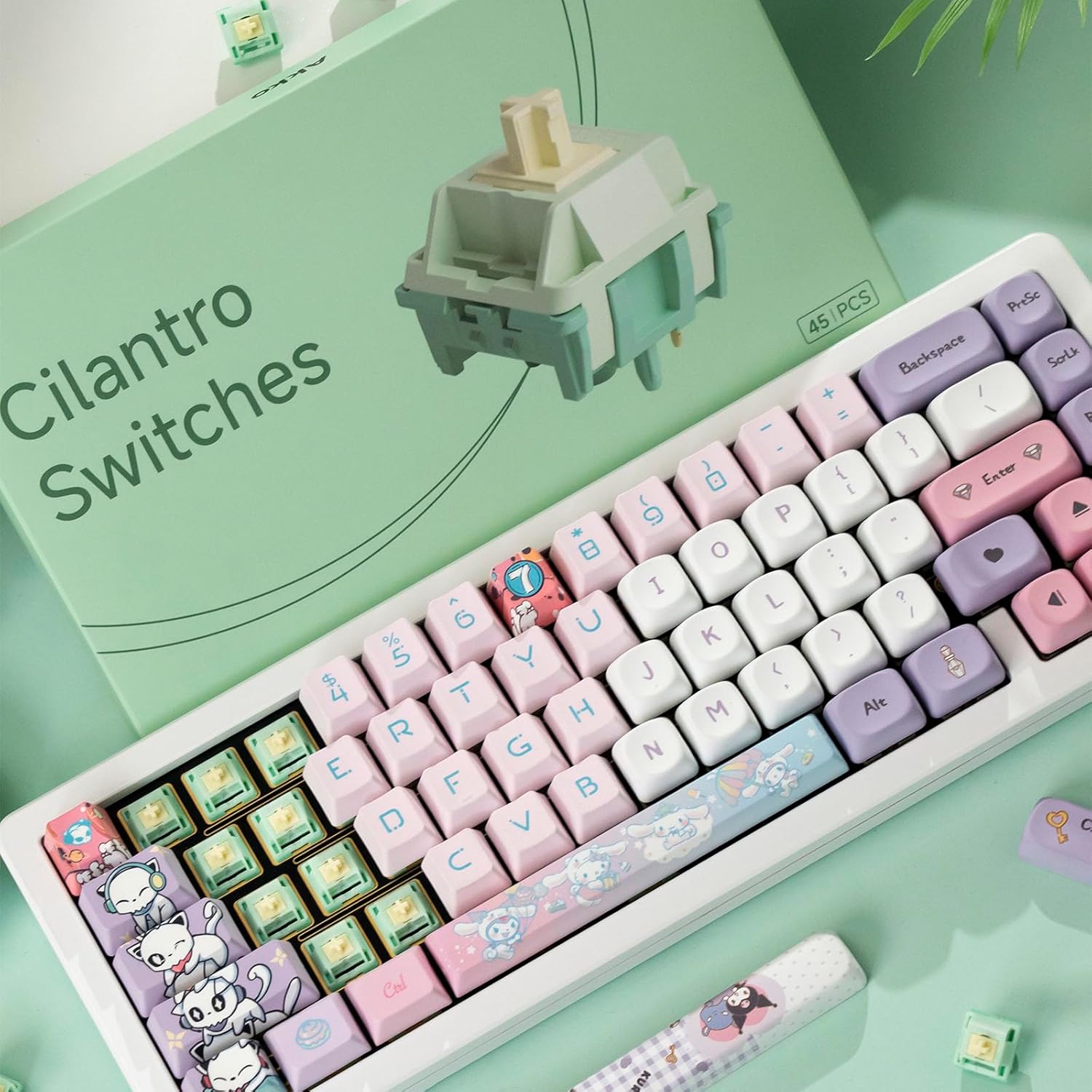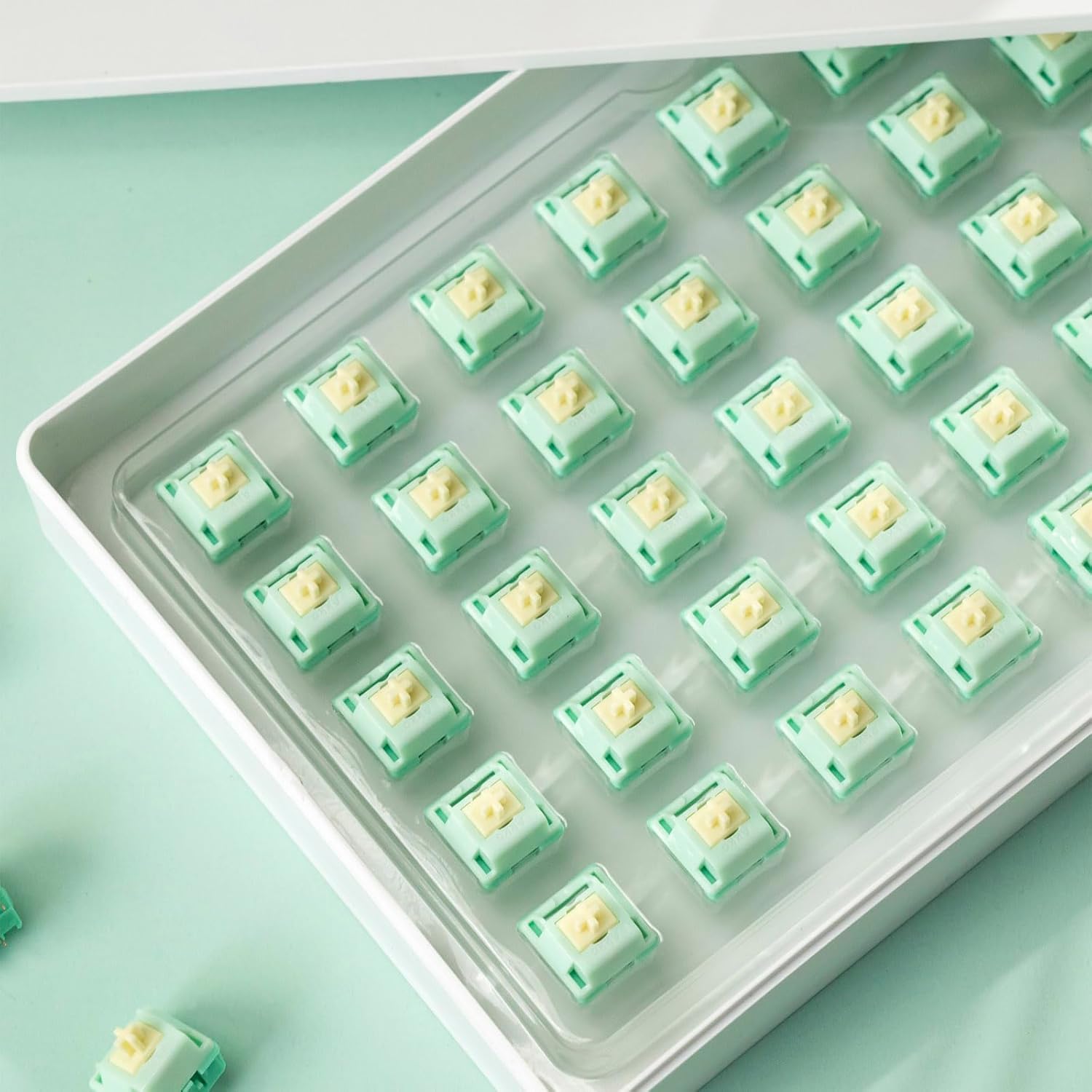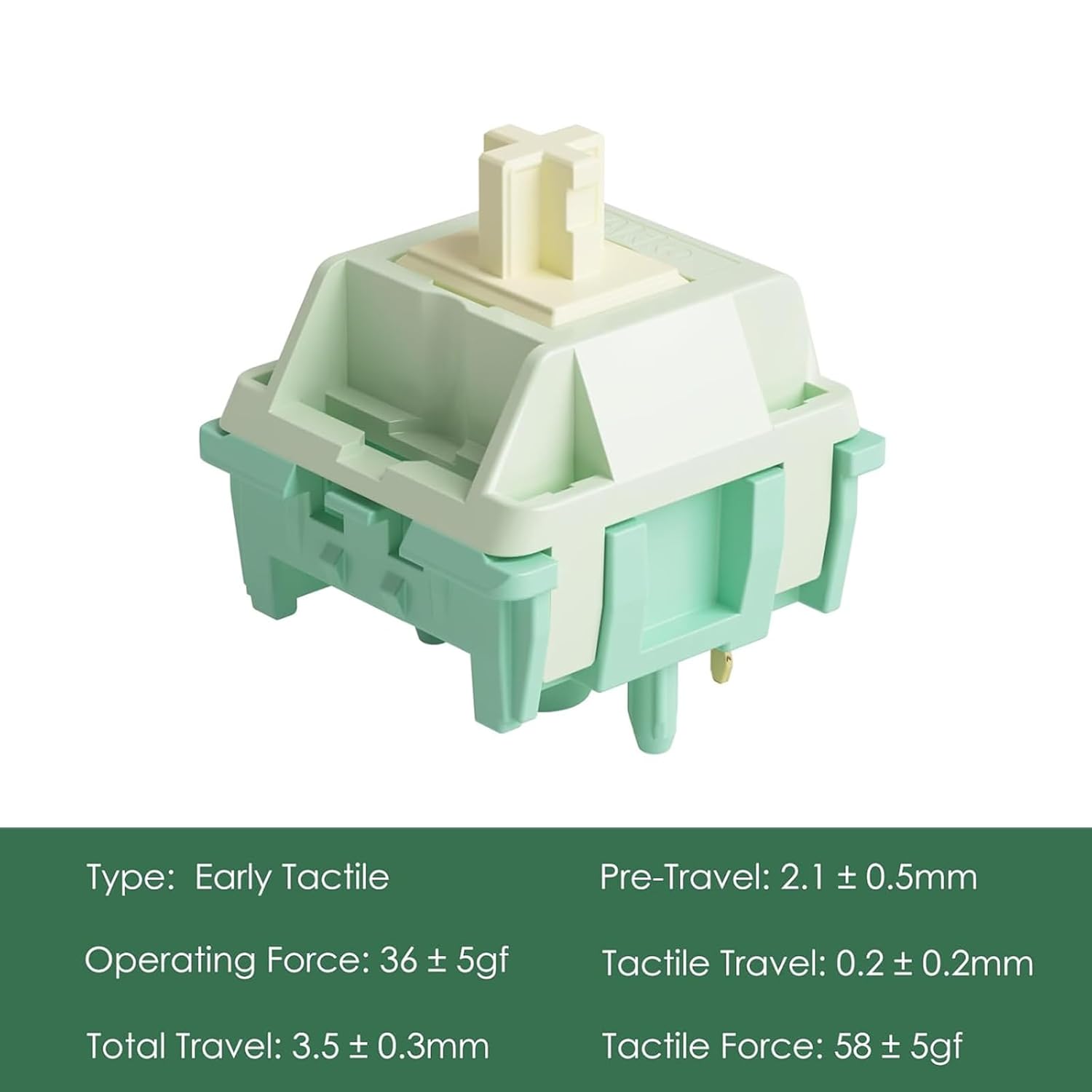 Тактилни превключватели за клавиатура Akko Cilantro, предварително смазани, 5-пинови, 36gf, за механични геймърски клавиатури, съвместими с MX Keycaps (Cilantro, пакет от 45)
