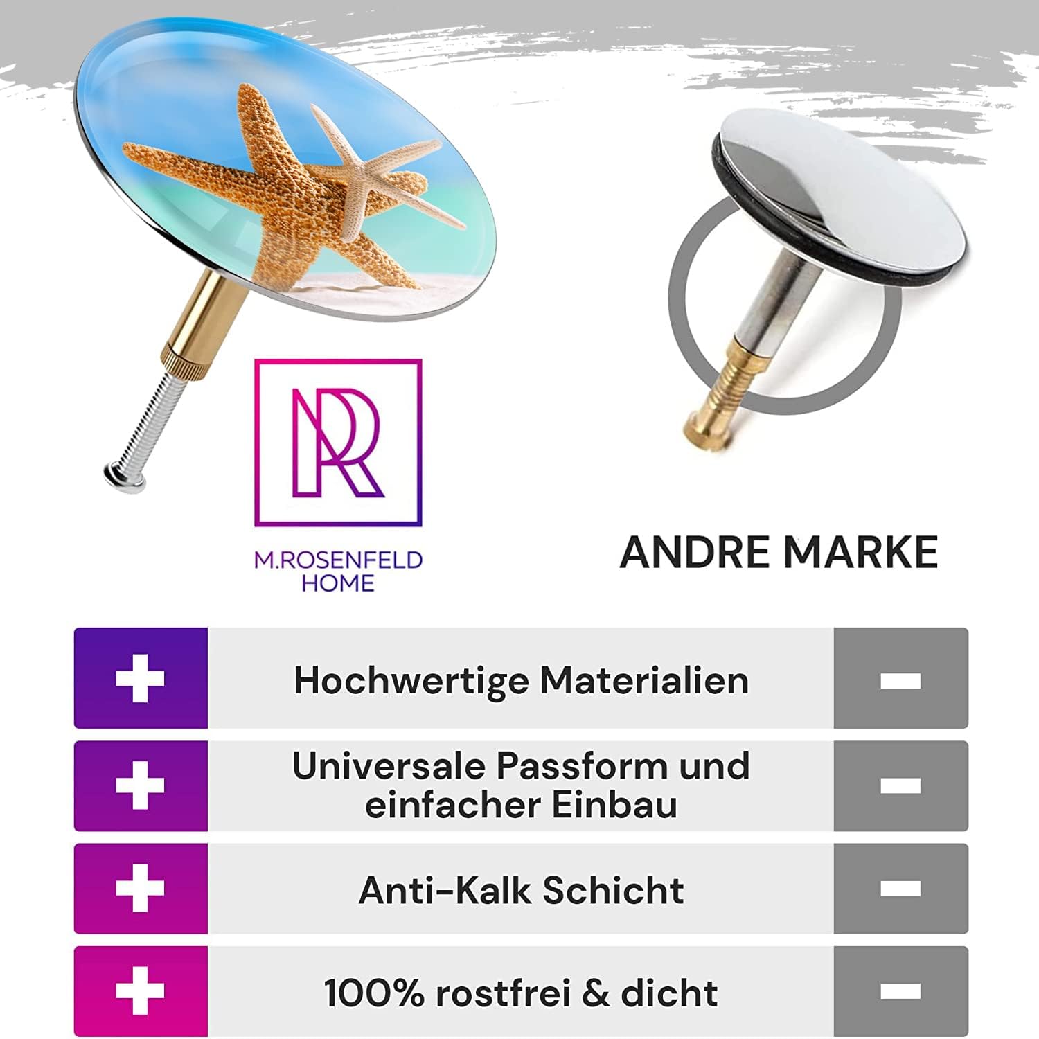 • Универсален размер Ø 72 мм: Тапата за вана е подходяща за всички стандартни вани – включително много специални вани – и надеждно покрива целия канал. Идеална е като резервна тапа.