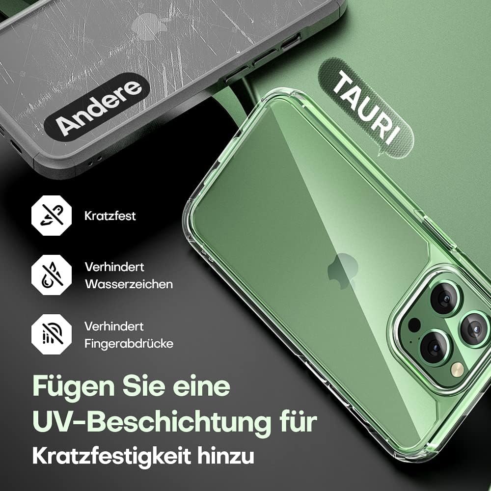 • Премиум защита и елегантност: TAURI калъф за iPhone 17 Pro: Кристално прозрачен PC гръб с дълготрайно покритие против пожълтяване, прецизна защита на камерата и ударопоглъщаща TPU рамка, оптимална защита с вечен дизайн.