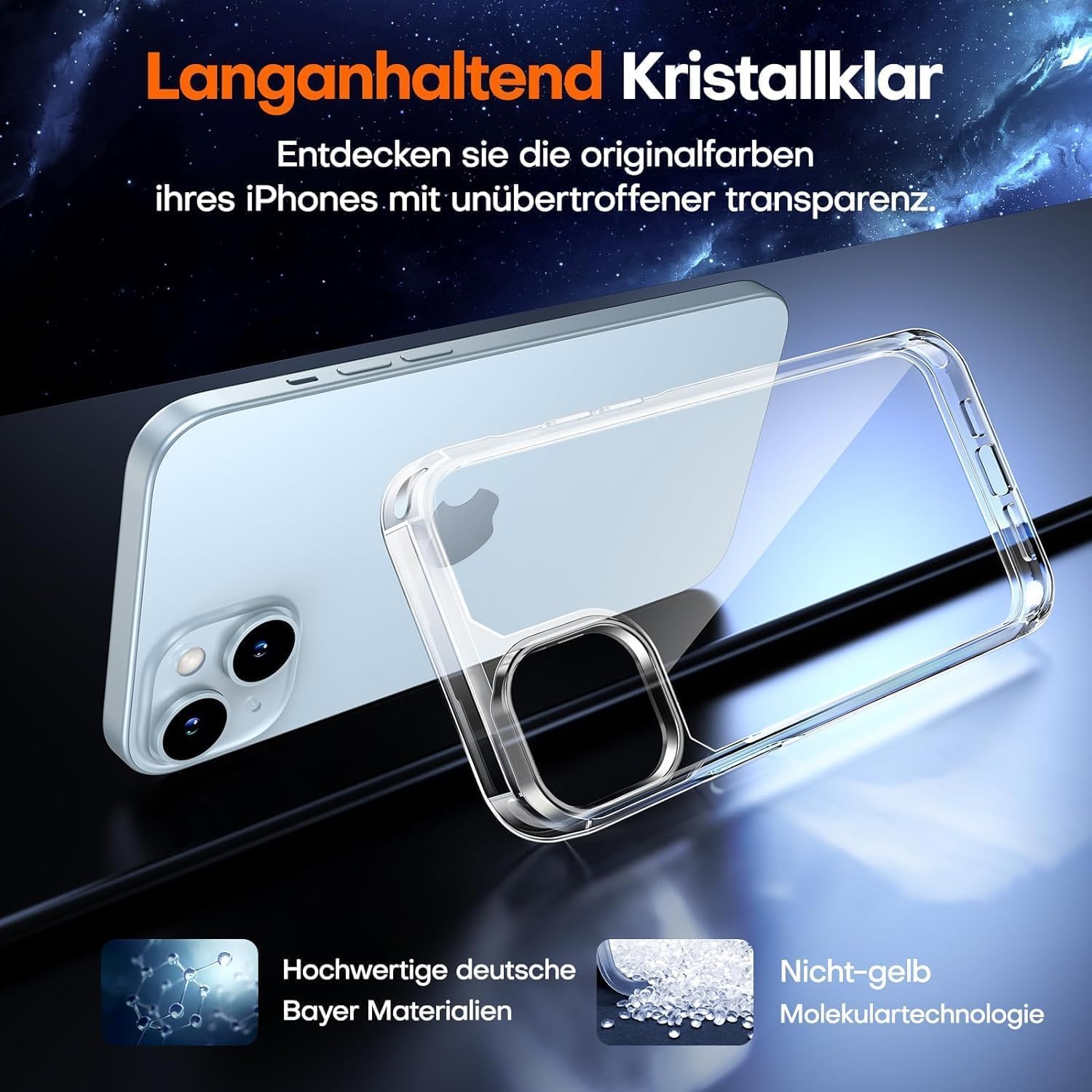 • Премиум защита и елегантност: TAURI калъф за iPhone 17 Pro: Кристално прозрачен PC гръб с дълготрайно покритие против пожълтяване, прецизна защита на камерата и ударопоглъщаща TPU рамка, оптимална защита с вечен дизайн.