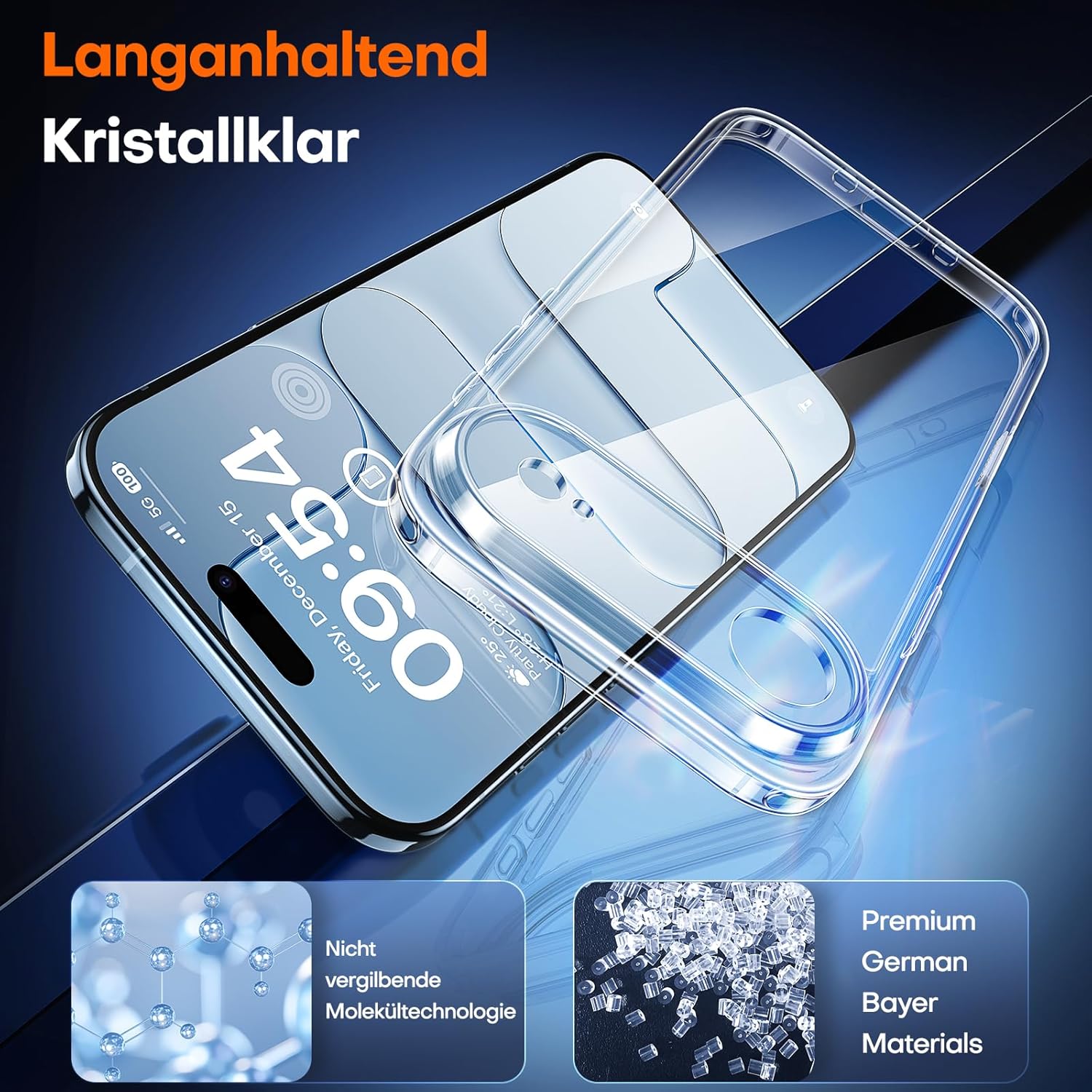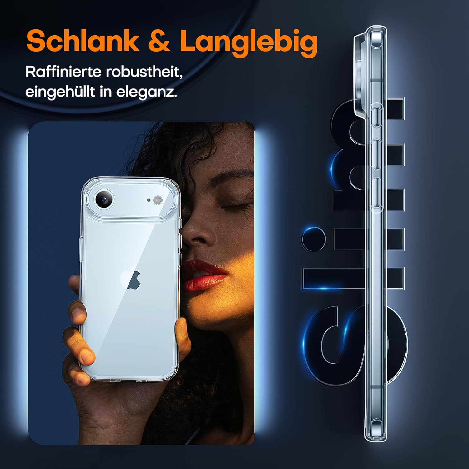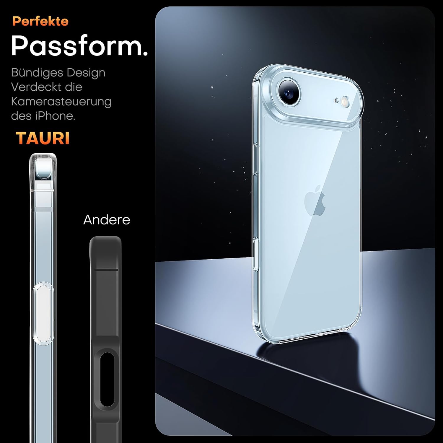 • Премиум защита и елегантност: TAURI калъф за iPhone 17 Pro: Кристално прозрачен PC гръб с дълготрайно покритие против пожълтяване, прецизна защита на камерата и ударопоглъщаща TPU рамка, оптимална защита с вечен дизайн.