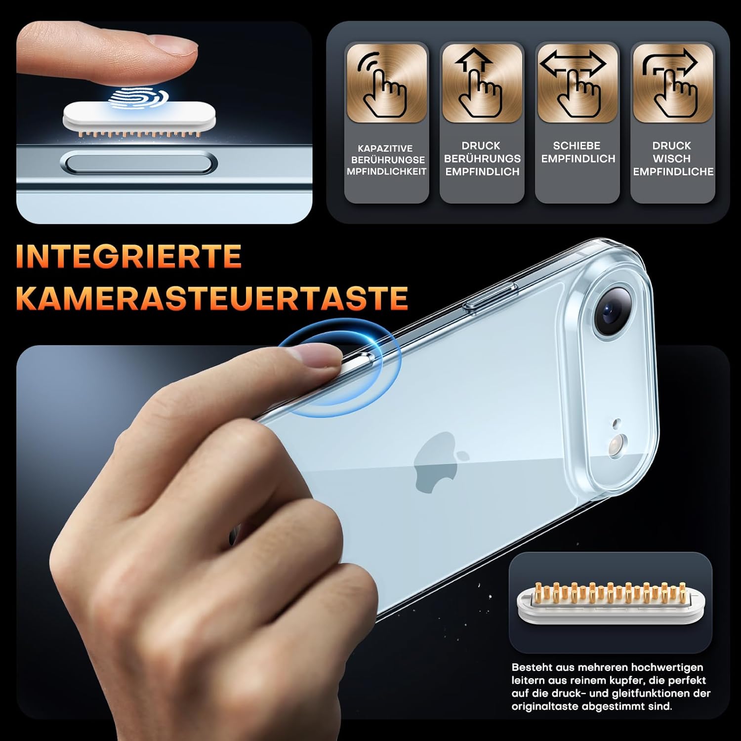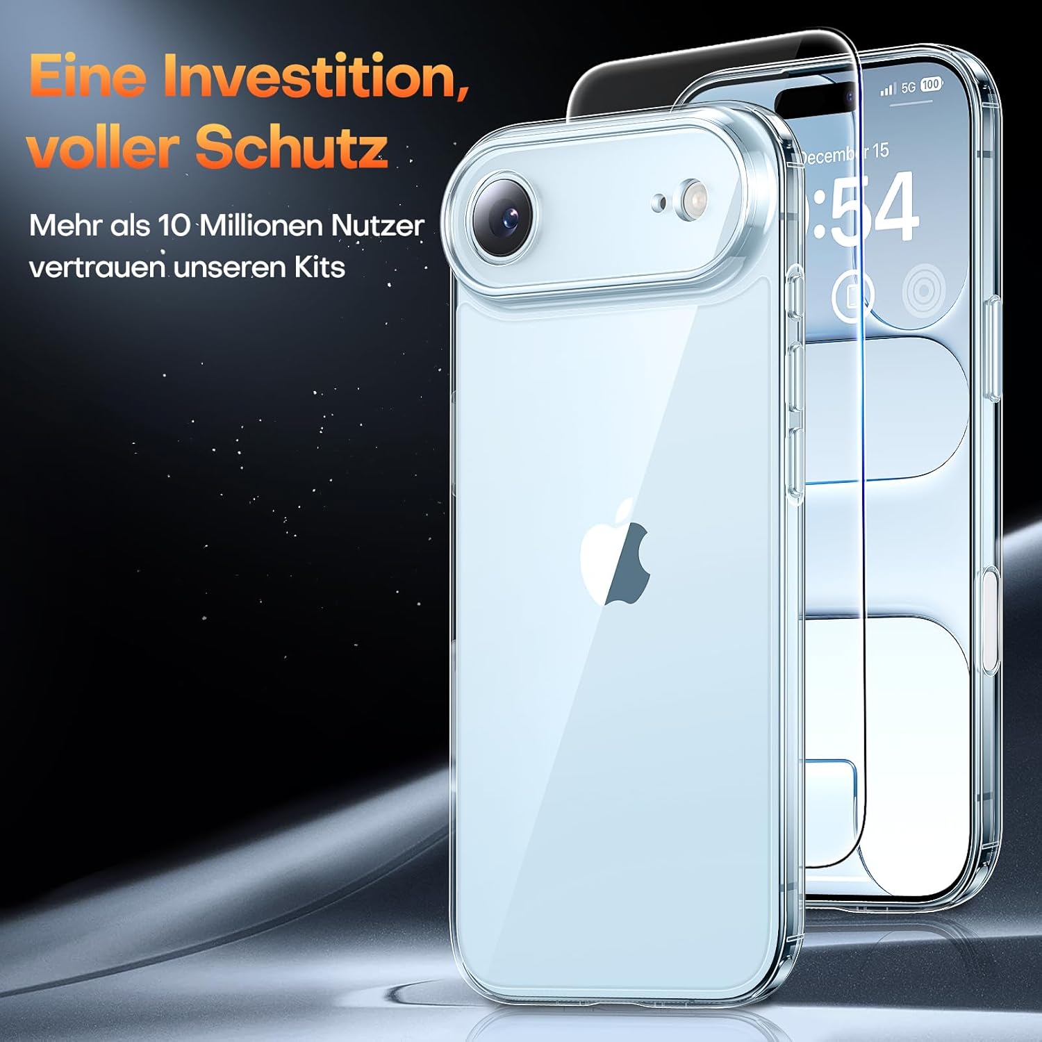 • 2 в 1, 360° цялостна защита: Този удароустойчив комплект за iPhone 17 Pro, включващ висококачествено закалено стъкло 9H, предпазва екрана на телефона ви от надрасквания и счупване, като същевременно остава ултратънък и предлага приятно и чувствително усещане при допир, сякаш няма защита.