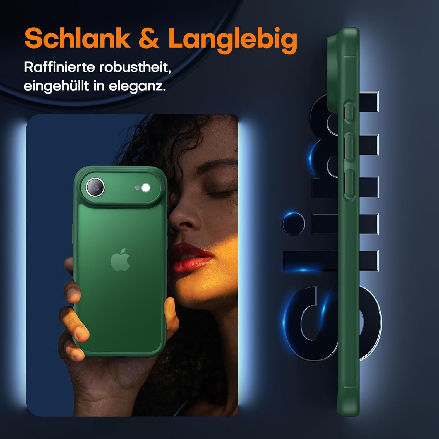 • 2 в 1, 360° цялостна защита: Този удароустойчив комплект за iPhone 17 Pro, включващ висококачествено закалено стъкло 9H, предпазва екрана на телефона ви от надрасквания и счупване, като същевременно остава ултратънък и предлага приятно и чувствително усещане при допир, сякаш няма защита.