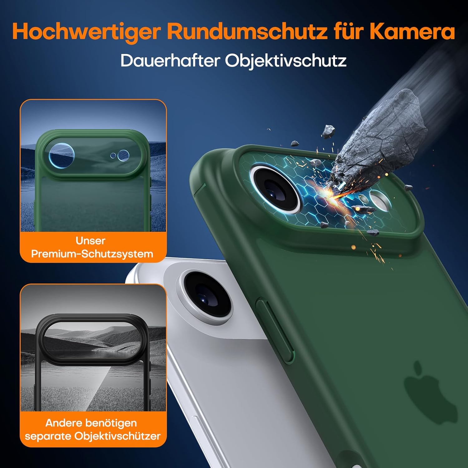 • Надграждане: Многослойна защита от падане от 4,5 метра: Нашият калъф за iPhone 17 Pro има мека TPU рамка и твърд PC заден панел. Благодарение на иновативната вградена клетъчна структура за абсорбиране на удари, той осигурява многослойна защита от удар и намалява щетите дори при падане от височина до 4,5 метра.