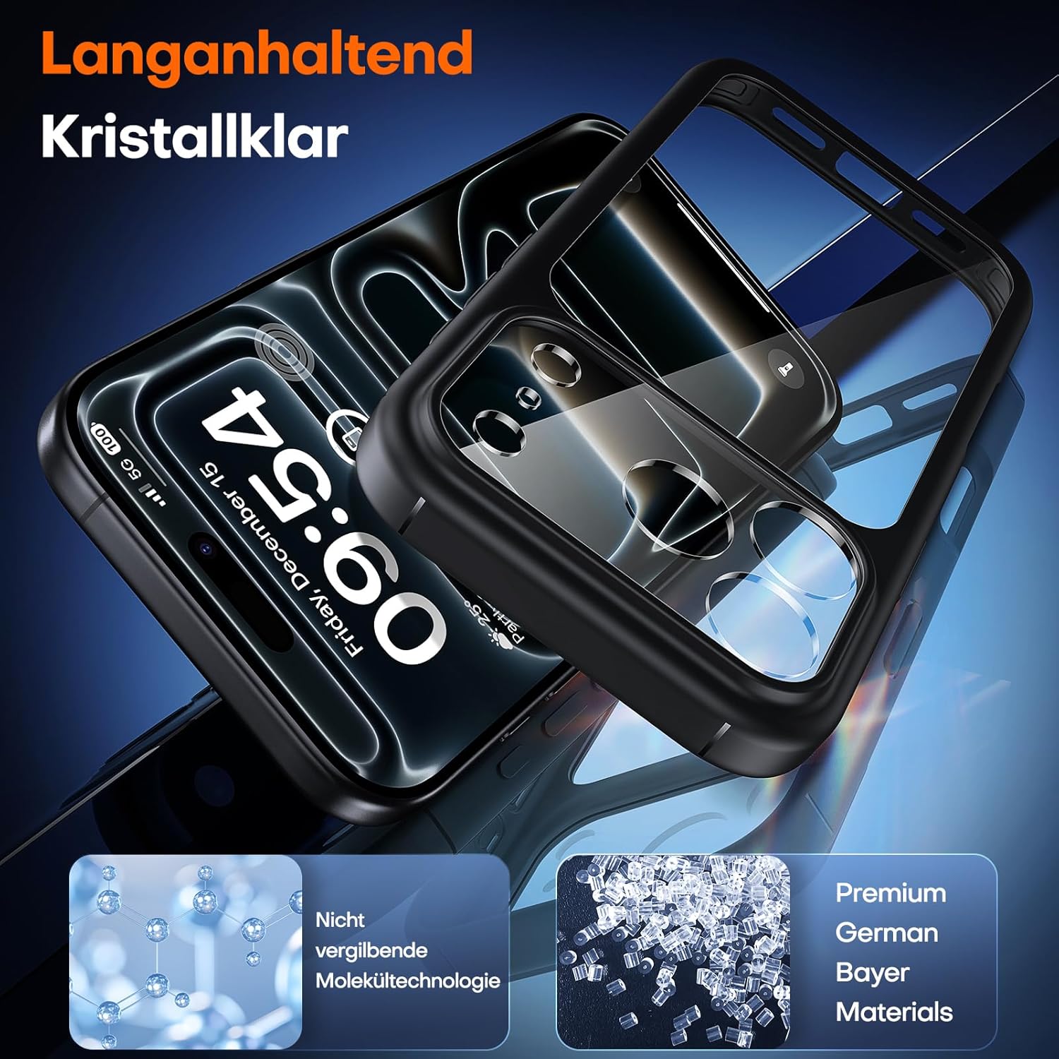 • Премиум защита и елегантност: TAURI калъф за iPhone 17 Pro: Кристално прозрачен PC гръб с дълготрайно покритие против пожълтяване, прецизна защита на камерата и ударопоглъщаща TPU рамка, оптимална защита с вечен дизайн.