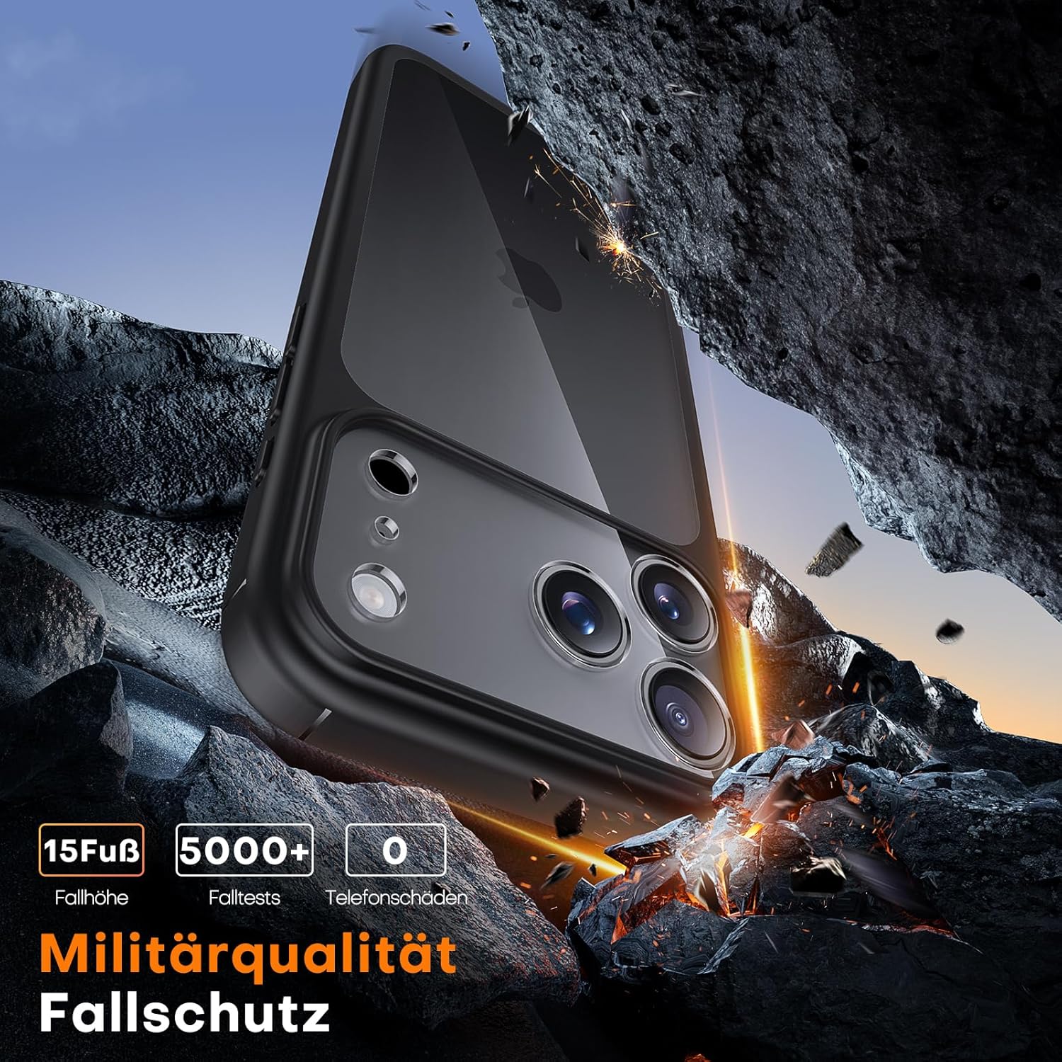 • Надграждане: Многослойна защита от падане от 4,5 метра: Нашият калъф за iPhone 17 Pro има мека TPU рамка и твърд PC заден панел. Благодарение на иновативната вградена клетъчна структура за абсорбиране на удари, той осигурява многослойна защита от удар и намалява щетите дори при падане от височина до 4,5 метра.