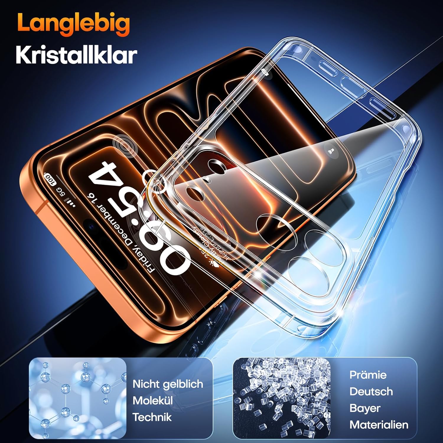 • Премиум защита и елегантност: TAURI калъф за iPhone 17 Pro: Кристално прозрачен PC гръб с дълготрайно покритие против пожълтяване, прецизна защита на камерата и ударопоглъщаща TPU рамка, оптимална защита с вечен дизайн.