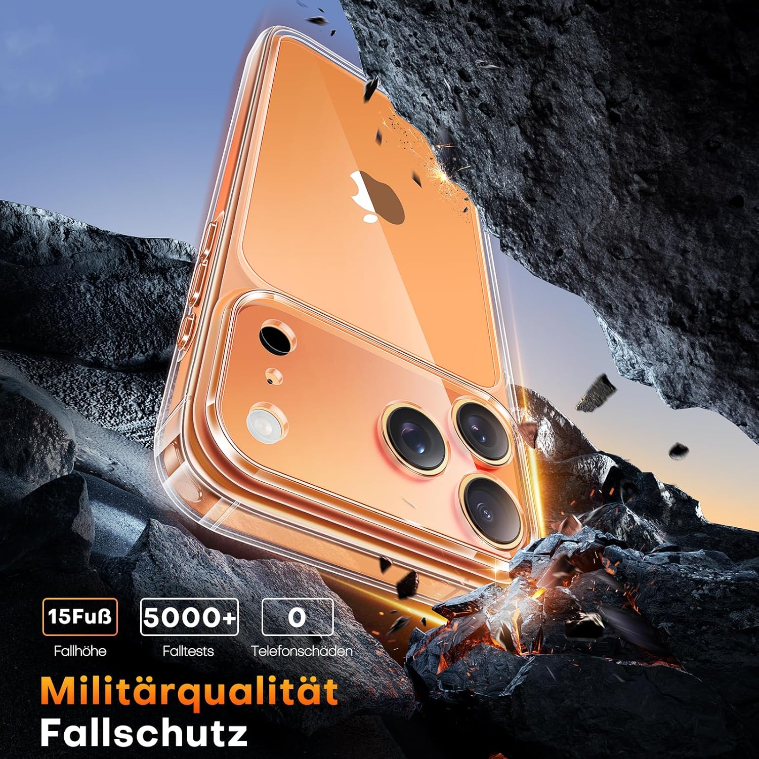 • Надграждане: Многослойна защита от падане от 4,5 метра: Нашият калъф за iPhone 17 Pro има мека TPU рамка и твърд PC заден панел. Благодарение на иновативната вградена клетъчна структура за абсорбиране на удари, той осигурява многослойна защита от удар и намалява щетите дори при падане от височина до 4,5 метра.