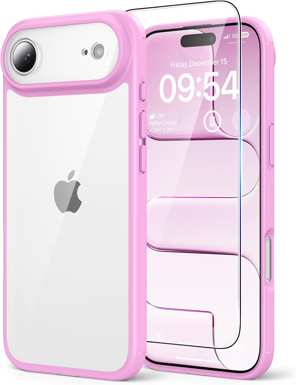 TAURI Кейс за Air 2025 6.6 инча със закалено стъклено фолио, пълна защита на камерата, [против пожълтяване] удароустойчив прозрачен калъф за мобилен телефон, военен стандарт - розов