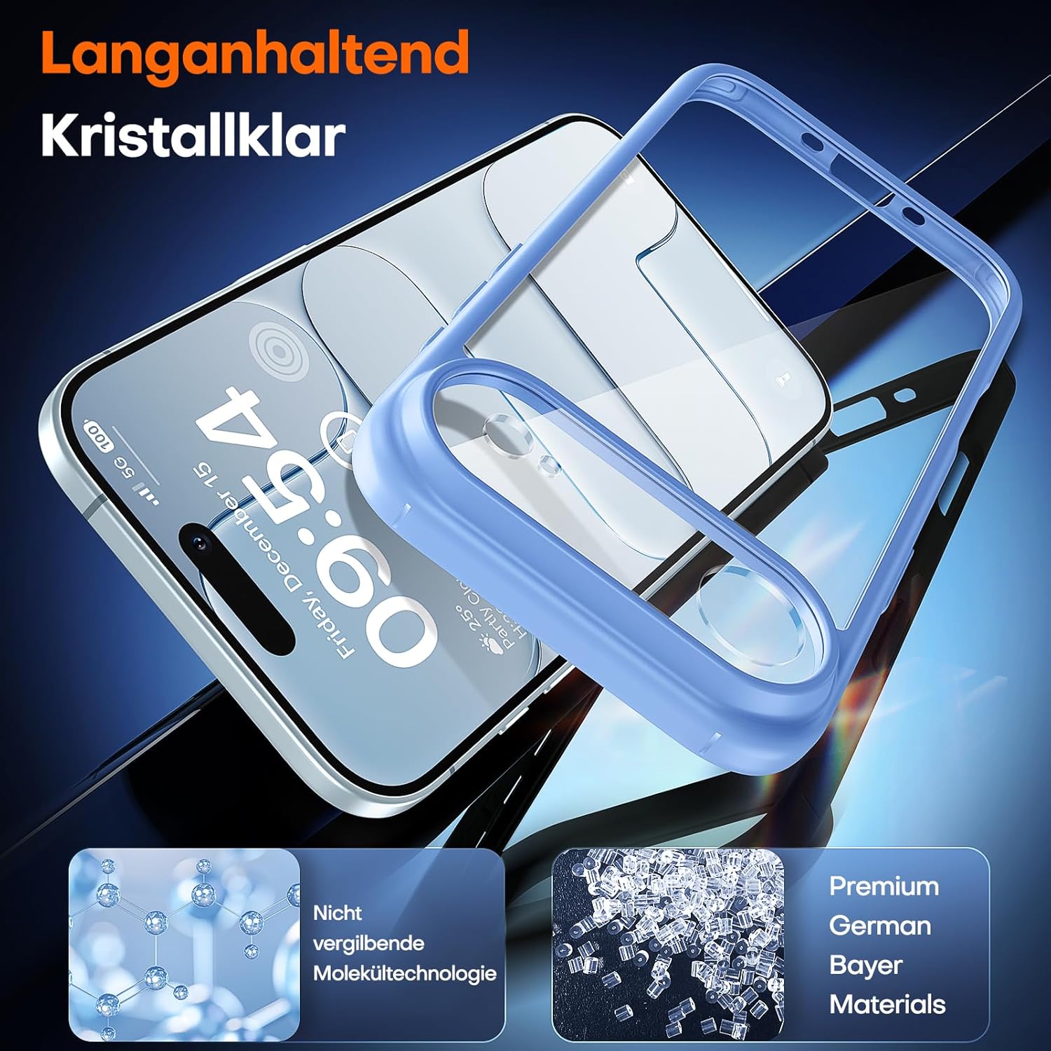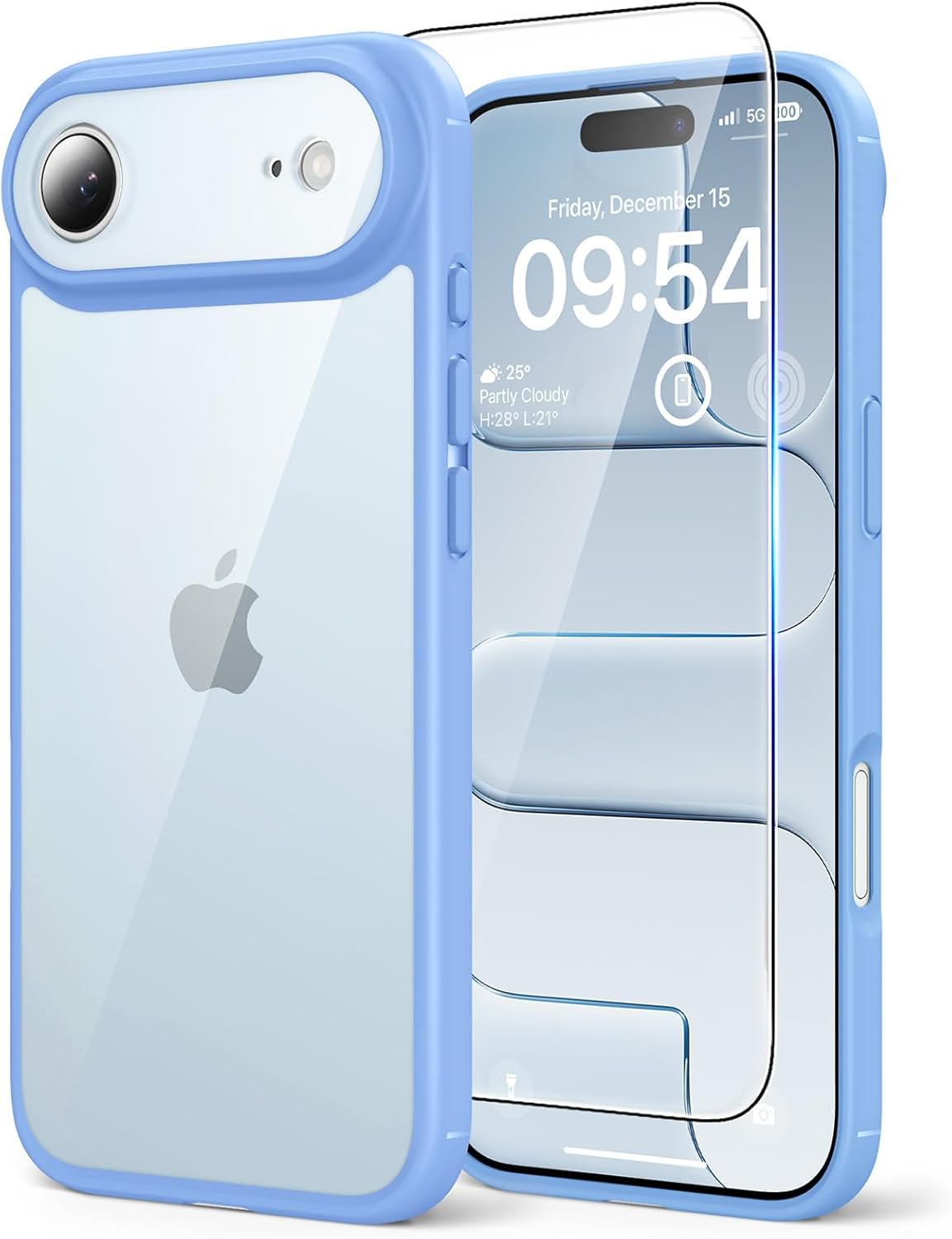 • 2 в 1, 360° цялостна защита: Този удароустойчив комплект за iPhone 17 Pro, включващ висококачествено закалено стъкло 9H, предпазва екрана на телефона ви от надрасквания и счупване, като същевременно остава ултратънък и предлага приятно и чувствително усещане при допир, сякаш няма защита.