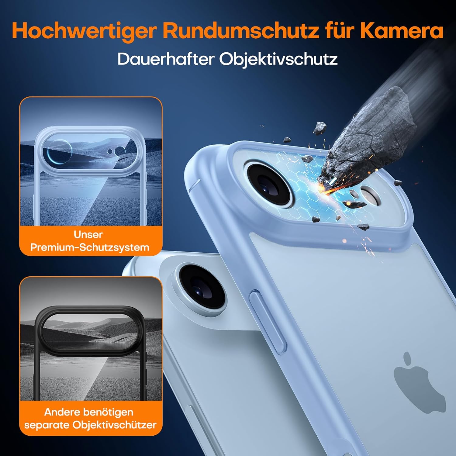 • Надграждане: Многослойна защита от падане от 4,5 метра: Нашият калъф за iPhone 17 Pro има мека TPU рамка и твърд PC заден панел. Благодарение на иновативната вградена клетъчна структура за абсорбиране на удари, той осигурява многослойна защита от удар и намалява щетите дори при падане от височина до 4,5 метра.