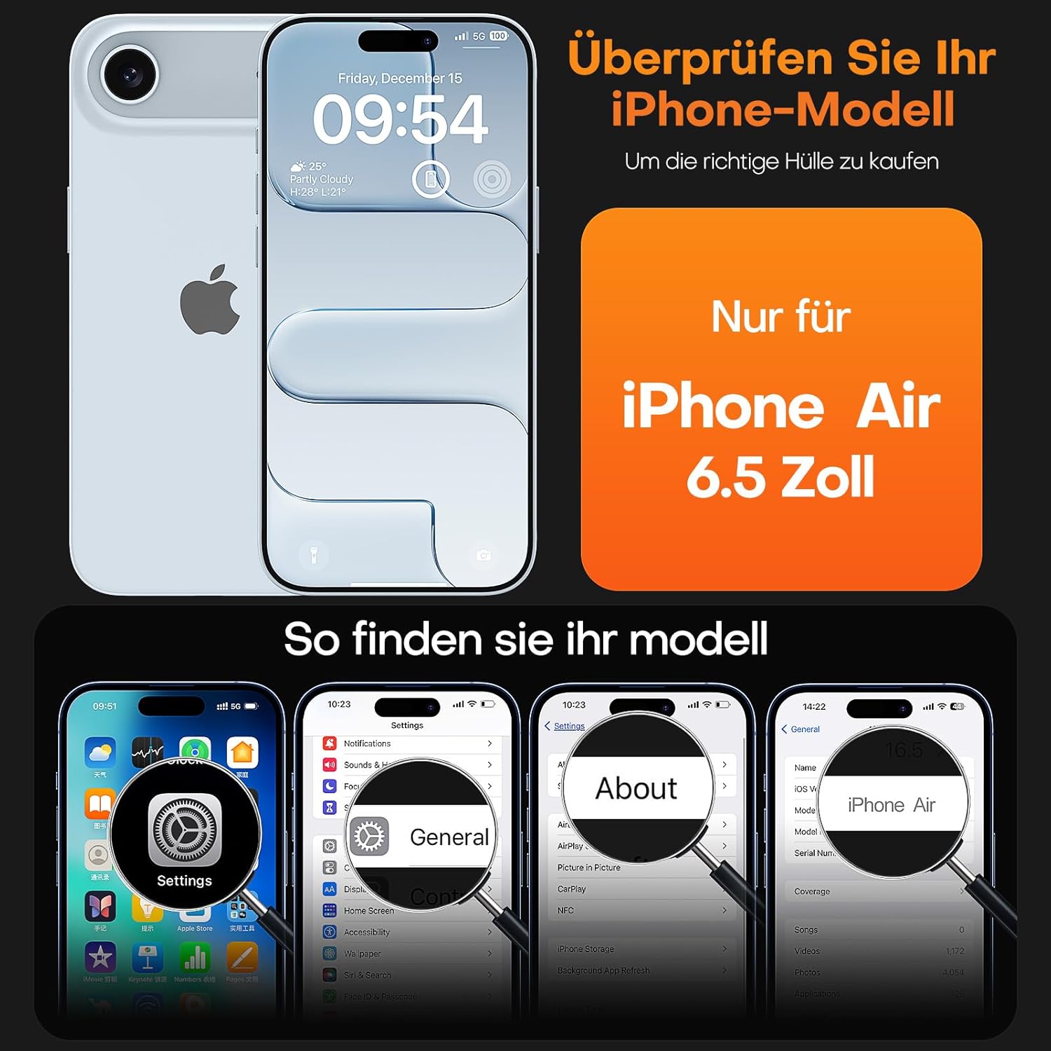 TAURI Кейс за Air 2025 6.6 инча със закалено стъклено фолио, пълна защита на камерата, [против пожълтяване] Удароустойчив прозрачен калъф за мобилен телефон, военен стандарт - звездно син