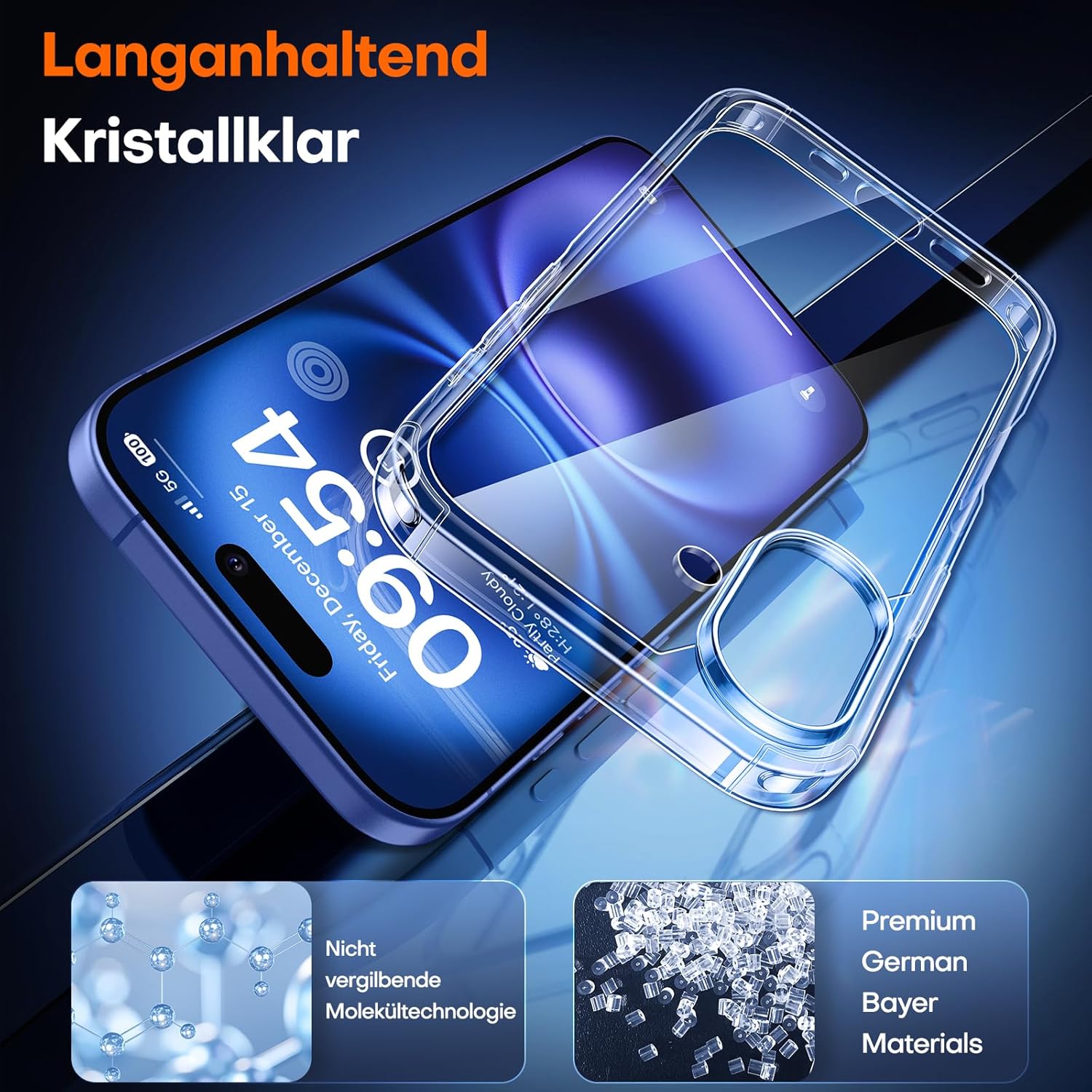 • Премиум защита и елегантност: TAURI калъф за iPhone 17 Pro: Кристално прозрачен PC гръб с дълготрайно покритие против пожълтяване, прецизна защита на камерата и ударопоглъщаща TPU рамка, оптимална защита с вечен дизайн.