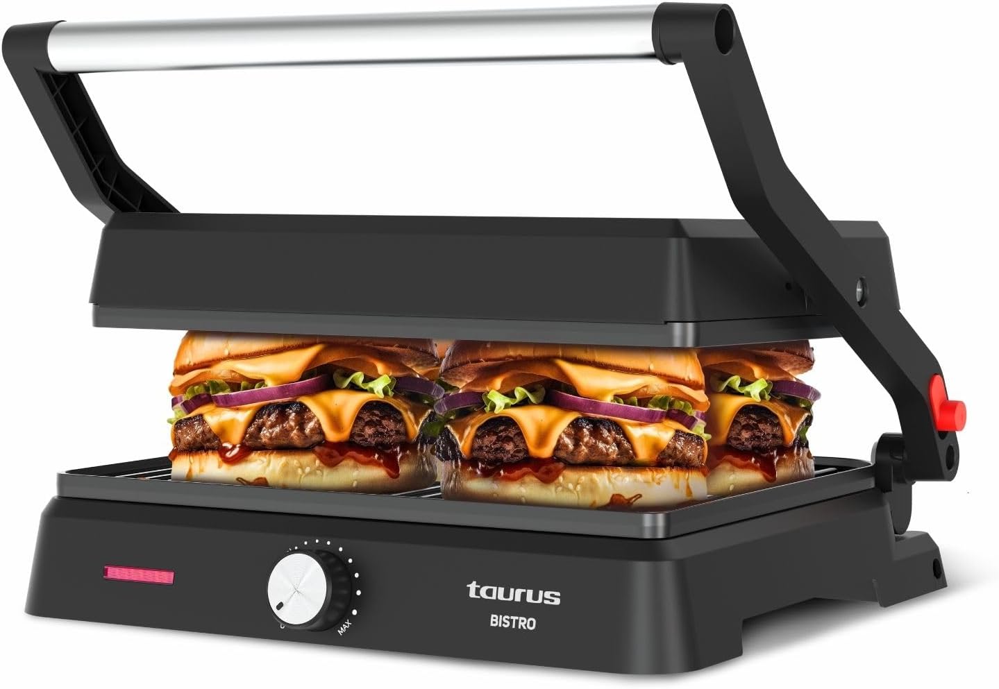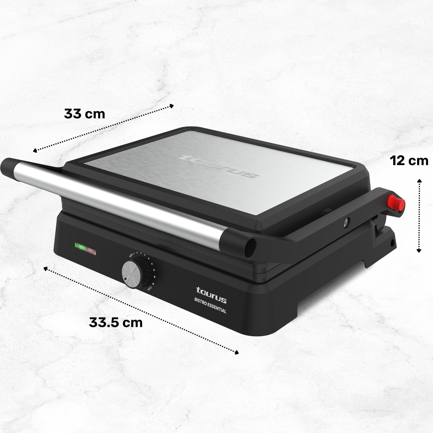 Скарата Taurus Essential е перфектният избор за всеки, който търси гъвкавост и висока производителност в кухнята. С максимална мощност от 2600 W, този 2-в-1 грил и планча осигурява бързо и равномерно готвене. Плочите за грил с размери 29 x 23 см предлагат достатъчно място за приготвяне на няколко ястия едновременно. Благодарение на системата Stair, горната плоча може да се регулира на 5 нива на височина, така че скарата да се адаптира перфектно към различни видове храна. Незалепващото покритие без PFOA предотвратява залепването на храната и улеснява почистването. Подвижна тавичка за събиране на мазнини осигурява чисто печене на скара. Скарата се отваря на 180°, което я прави голяма плоча за грил, а дръжката Cool touch осигурява безопасна работа. Регулируемият термостат позволява прецизен контрол на температурата, а заключването на плочата осигурява допълнителна сигурност. С Taurus Essential Grill приготвянето на здравословни и вкусни ястия е по-лесно от всякога!
