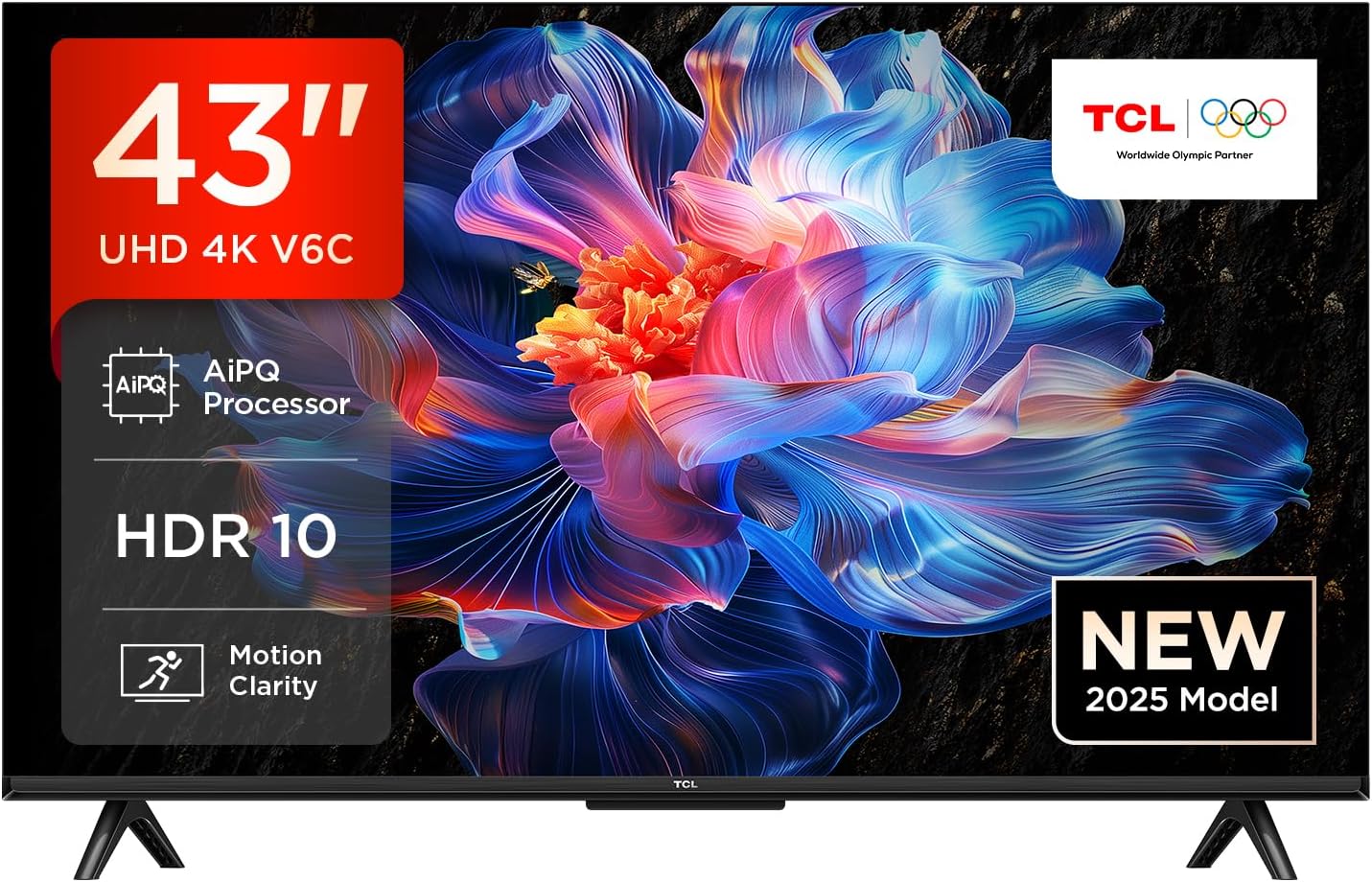 TCL 43V6C 43-инчов 4K UHD Smart TV – HDR10+, HVA панел, Dolby Vision, Google TV, HDMI 2.1, DVB-T2/C/S2, Bluetooth 5.2, гласово управление с Alexa и Google Assistant