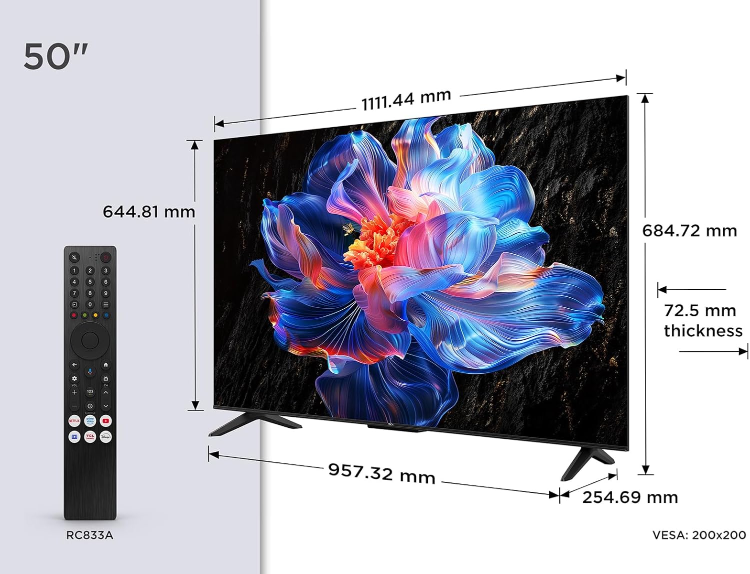 TCL 50V6C 50-инчов Direct LED телевизор, 4K HDR телевизор, Smart TV с Google TV (Dolby Audio, Motion Clarity, съвместим с Google Assistant и Alexa)