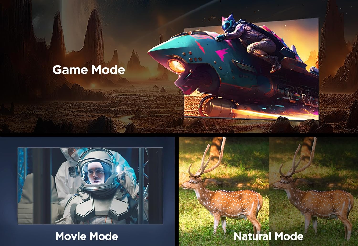 • QLED и 4K UHD с 97% DCI-P3 – впечатляващи цветове във всяка сцена: QLED панелът с 4K резолюция и 97% DCI-P3 покритие на цветовото пространство осигурява ярки, реалистични цветове и изключително ясни детайли – идеални за филми, сериали и игри.