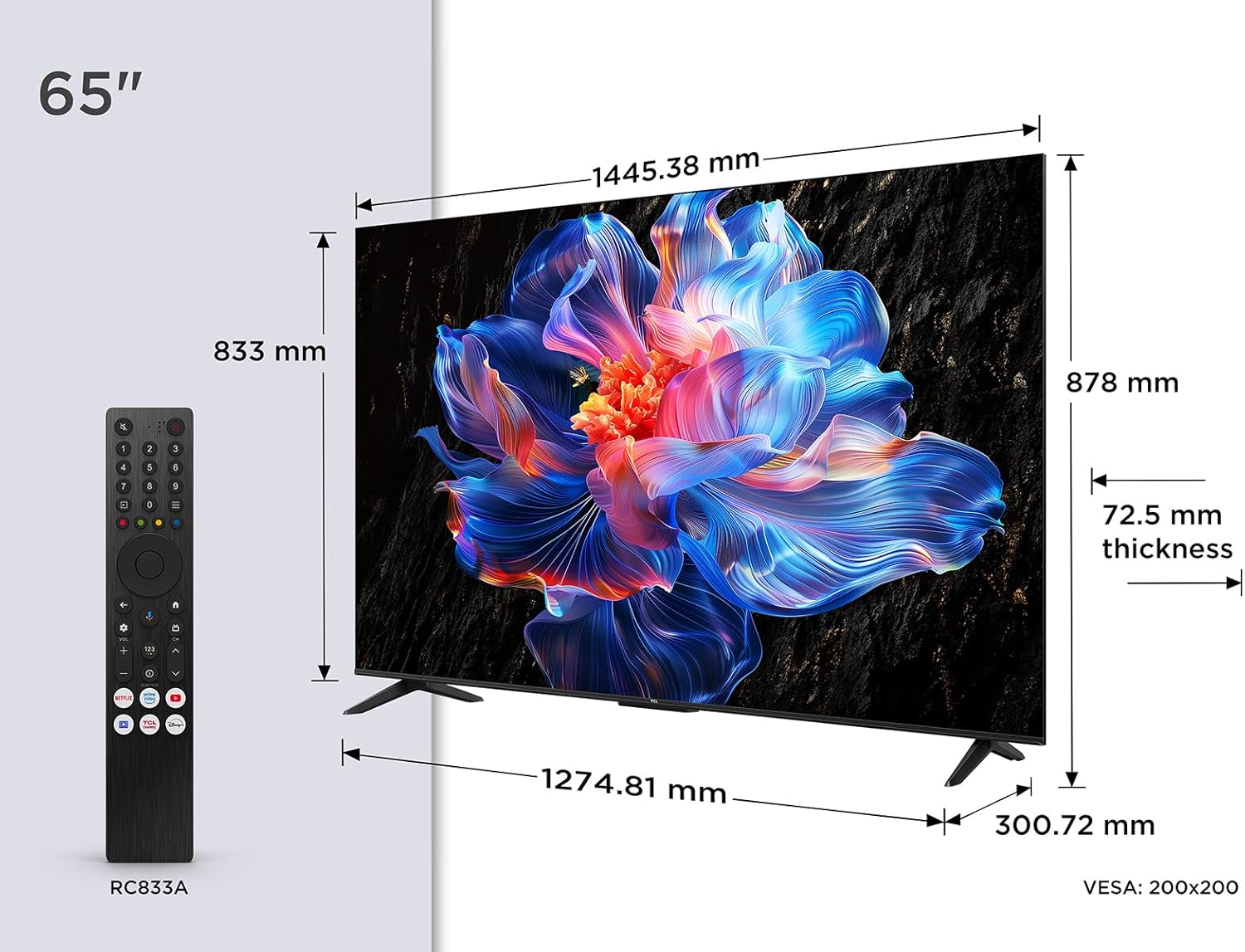 TCL 65V6C 65-инчов Direct LED телевизор, 4K HDR телевизор, Smart TV с Google TV (Dolby Audio, Motion Clarity, съвместим с Google Assistant и Alexa)