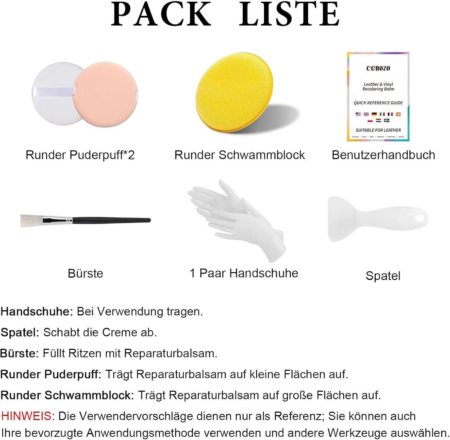 • Професионален комплект за ремонт на кожа: вдъхнете нов живот на любимите си кожени изделия с нашия първокласен комплект за ремонт на драскотини по кожен диван. Този препарат за възстановяване на цвета на кожата е подходящ за възстановяване на надраскана или избеляла кожа до оригиналния ѝ блясък. Той е повече от просто оцветяващ балсам, той съживява цвета на вашата кожа и осигурява жизнено покритие без петна.