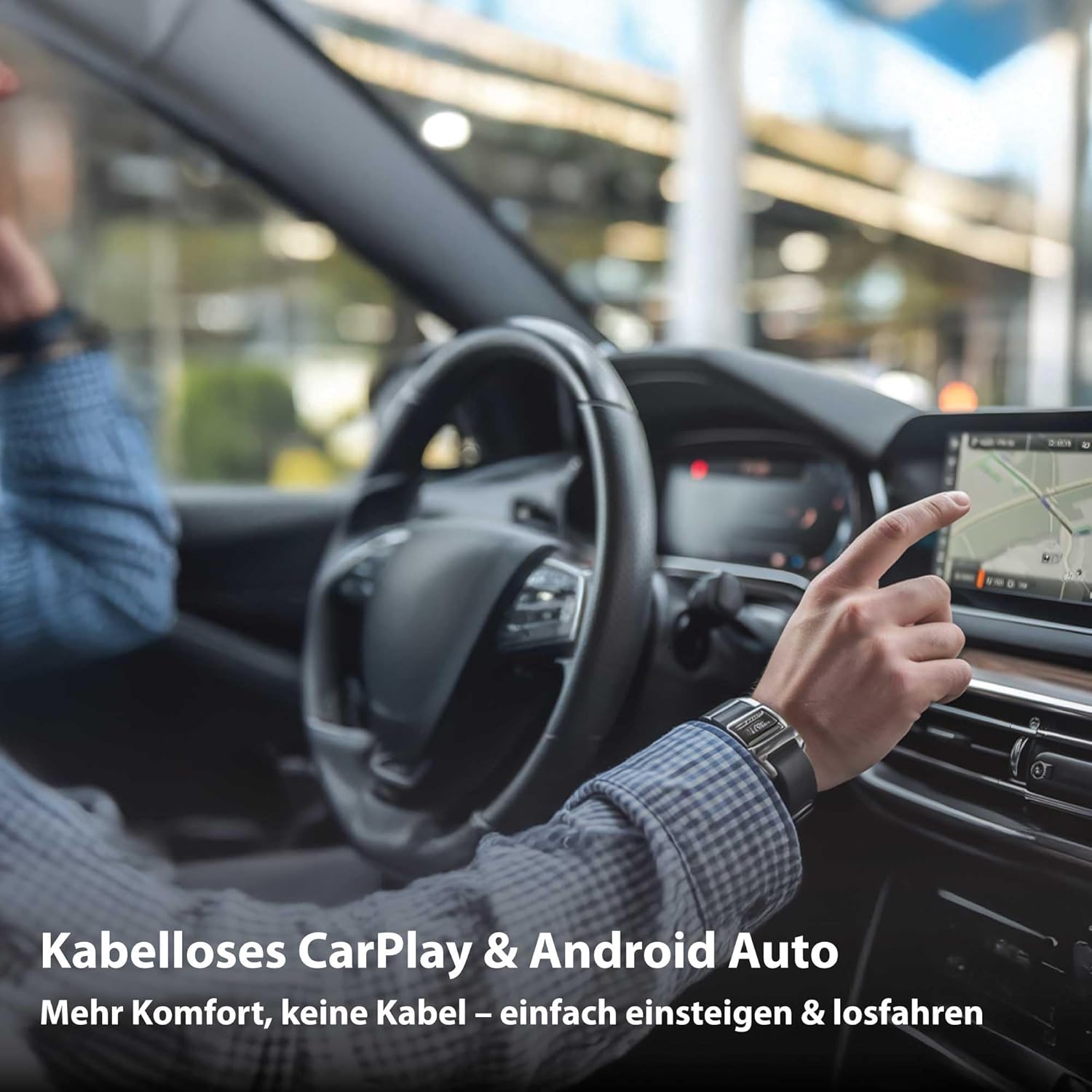 • Plug & Play – Просто го включете и се свържете мигновено: Включва USB-A към USB-C адаптер и 90° ъглов адаптер – идеален за различни входове в превозното средство. Инсталацията отнема само секунди и не изисква приложение или допълнителен софтуер;